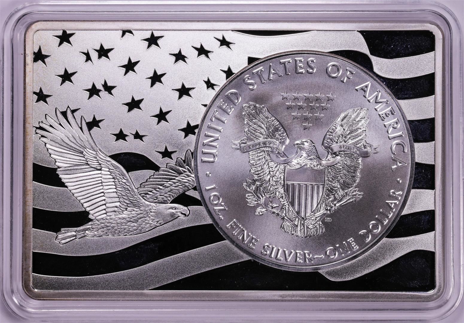 One 2017 $1 American Silver Eagle Coin & 2oz Silver Bar Set.
