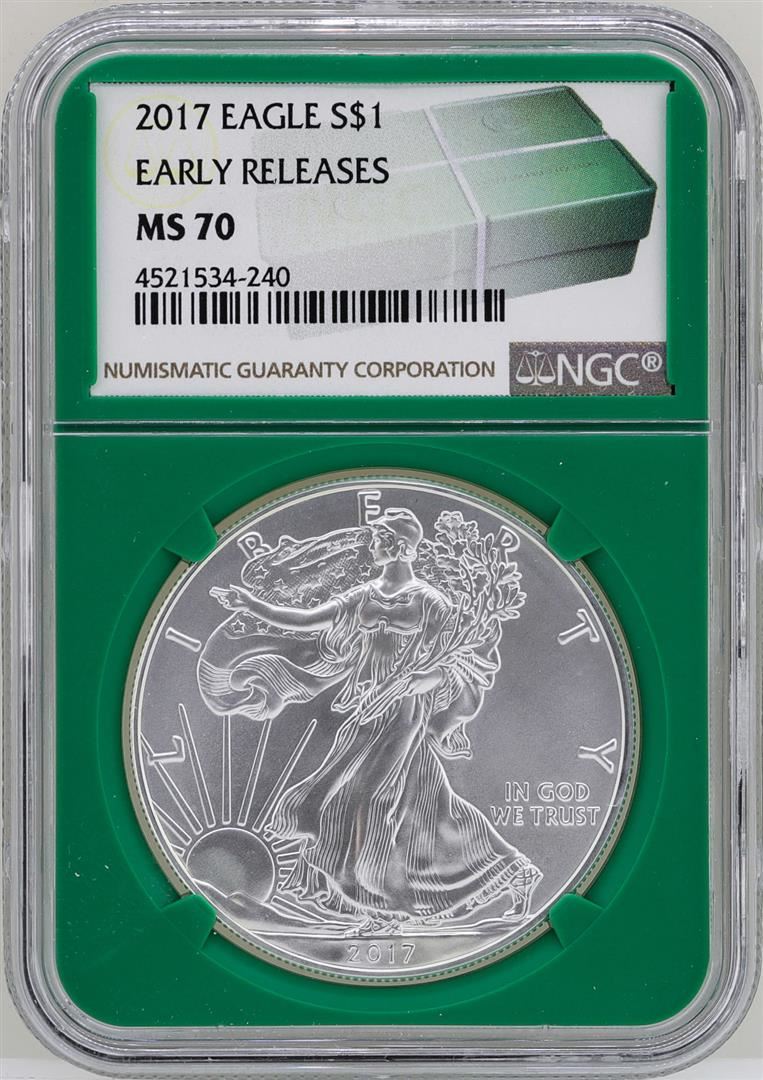 2017 $1 American Silver Eagle Coin NGC MS70 Early Releases Green Core