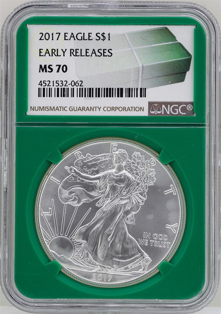 2017 $1 American Silver Eagle Coin NGC MS70 Early Releases Green Core