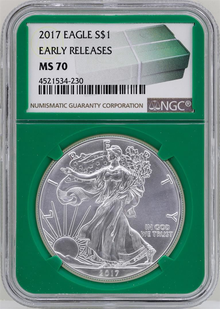 2017 $1 American Silver Eagle Coin NGC MS70 Early Releases Green Core