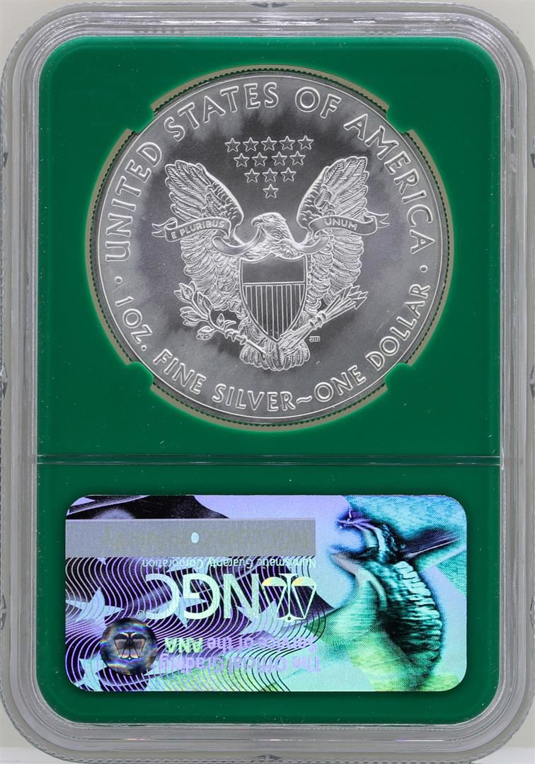 One 2017 $1 American Silver Eagle Coin NGC MS70 Early Releases Green Core. NGC Certified.