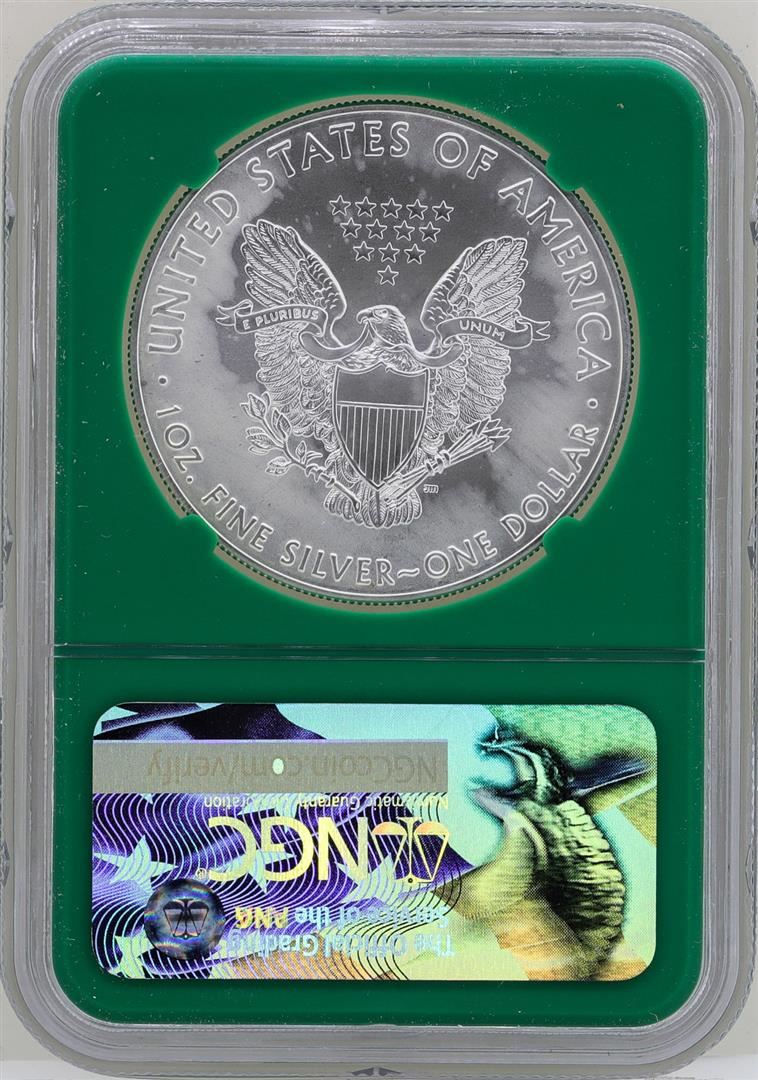One 2017 $1 American Silver Eagle Coin NGC MS70 Early Releases Green Core. NGC Certified.