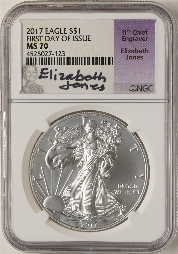 2017 $1 American Silver Eagle Coin NGC MS70 First Day of Issue Signed by Engrave