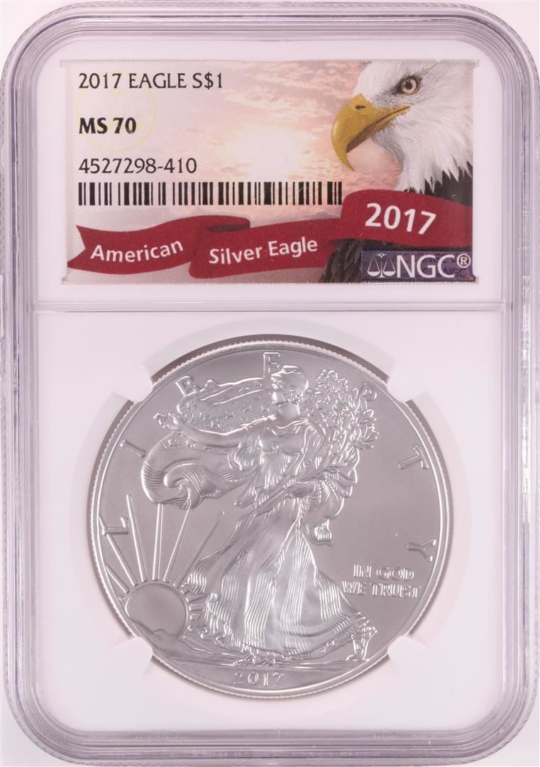 One 2017 $1 American Silver Eagle Coin NGC MS70. NGC Certified.