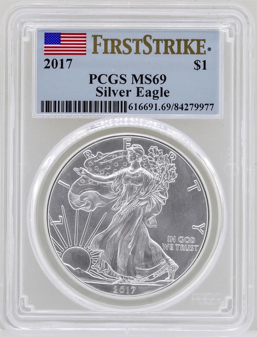 One 2017 $1 American Silver Eagle Coin PCGS MS69 First Strike. PCGS Certified.