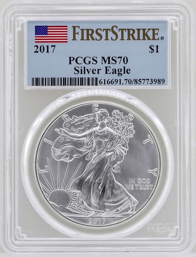 One 2017 $1 American Silver Eagle Coin PCGS MS70 First Strike. PCGS Graded.