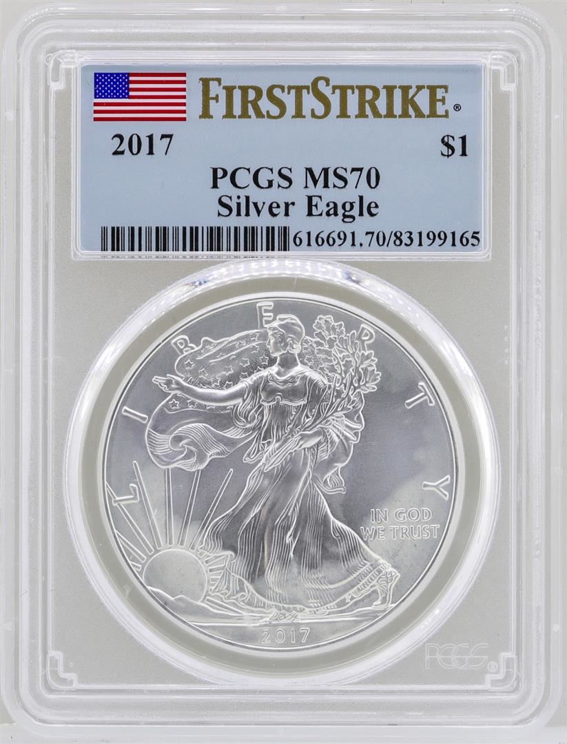 One 2017 $1 American Silver Eagle Coin PCGS MS70 First Strike. PCGS Graded.