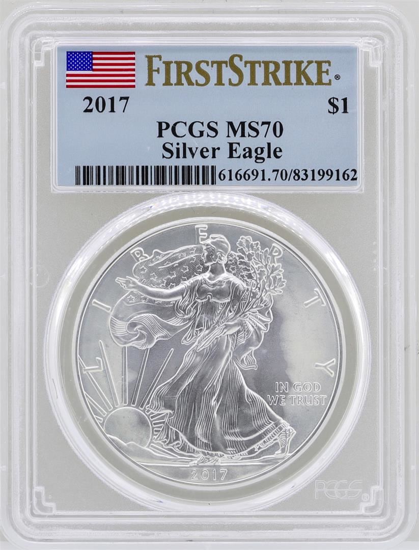 One 2017 $1 American Silver Eagle Coin PCGS MS70 First Strike. PCGS Certified.