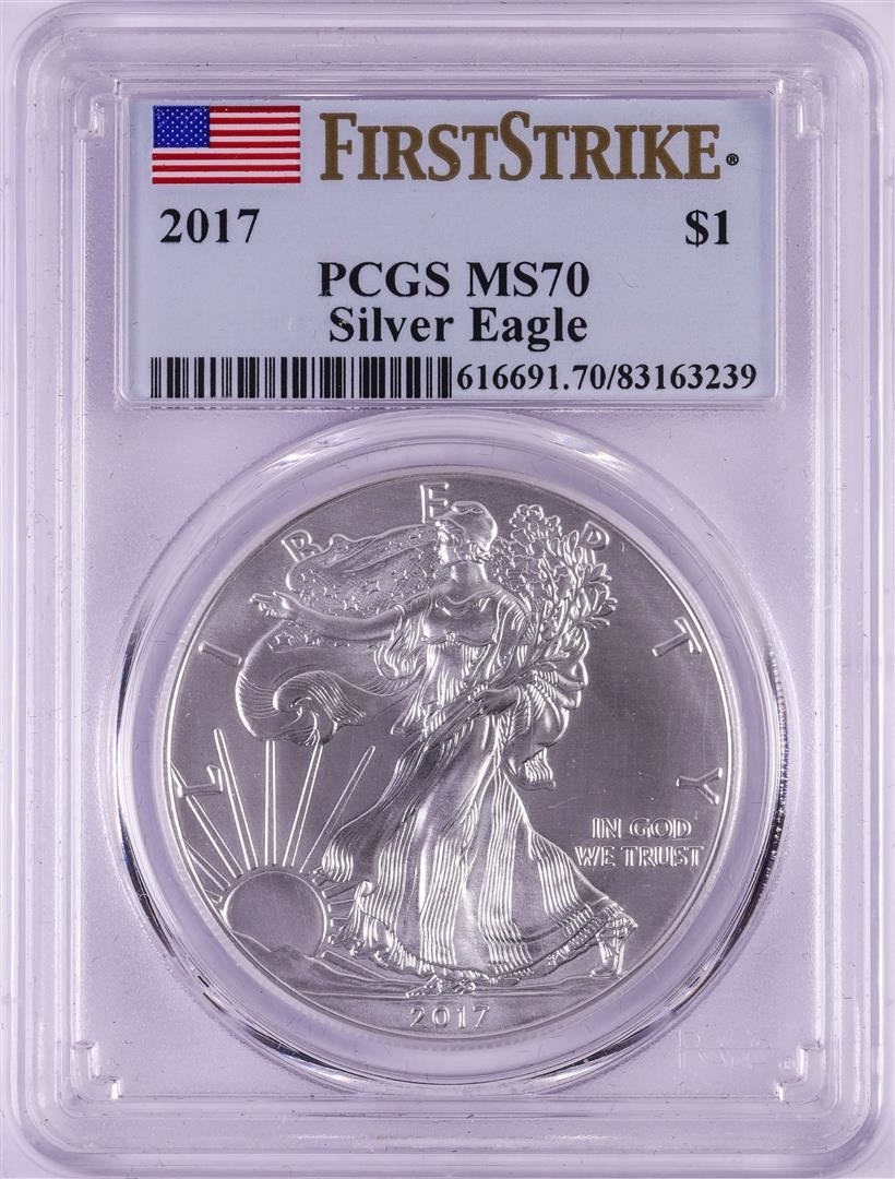 One 2017 $1 American Silver Eagle Coin PCGS MS70 First Strike. PCGS Graded.