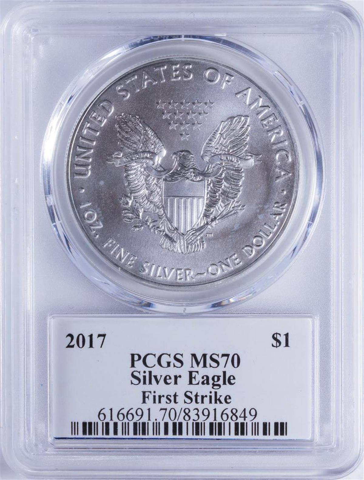 One 2017 $1 American Silver Eagle PCGS MS70 First Strike.