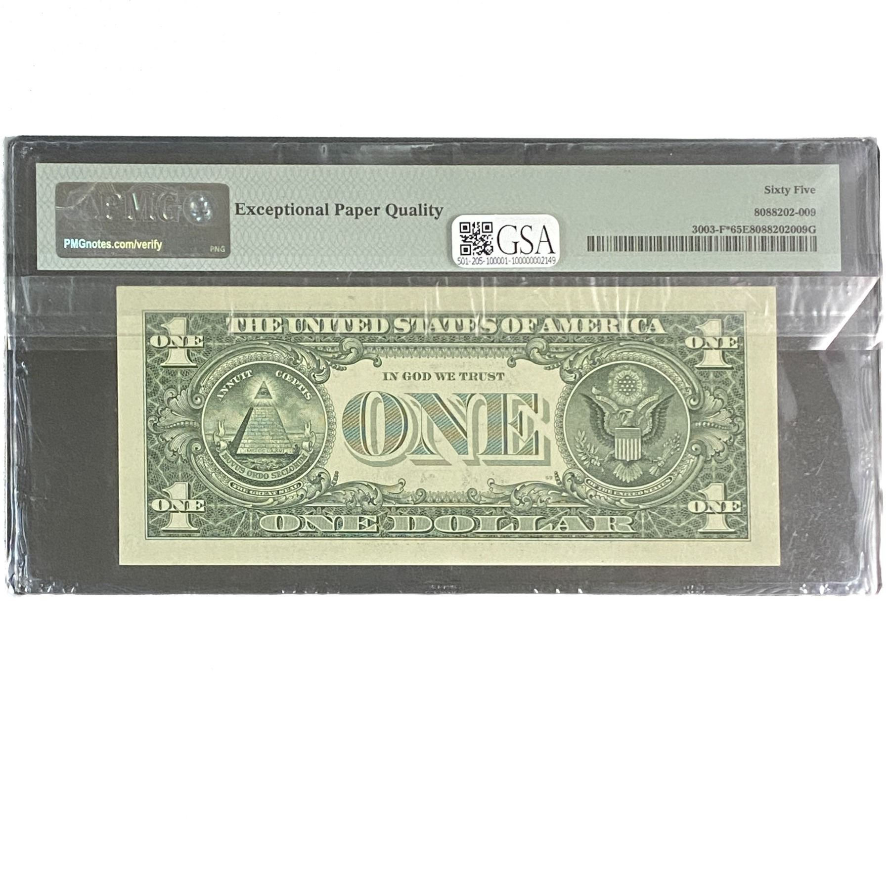 2017 $1 Federal Reserve Note Atlanta PMG GU 65