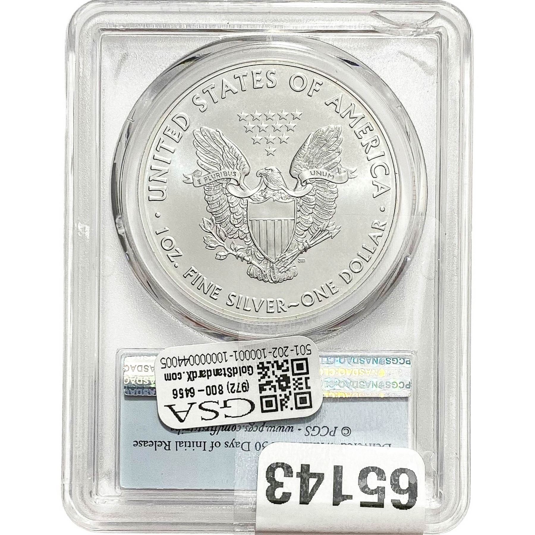 e. Coins sold referencing a third-party grading service are sold “AS IS” without any express or implied warranty, except for a guarantee by GSA that they are genuine. Removal or alteration of the holder, voids all of Bidder’s claims concerning that Product. Certain warranties may be available from the grading services and Bidders are referred to them for further details: Numismatic Guaranty Corporation (NGC), PO Box 4776, Sarasota, FL 34230, www.ngccoin.com/services/writtenguarantee.asp; Professional Coin Grading Services (PCGS), PO Box 9458, Newport Beach, CA 92658, www.pcgs.com/guarantee.html; ANACS, 6555 S. Kenton St., Ste. 303, Englewood, CO 80111; and Independent Coin Grading Co. (ICG), 7901 East Bellview, Ave., Suite 50, Englewood, CO 80111.