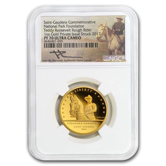 One piece 2017 1 oz Gold Teddy Roosevelt Rough Rider Commem PF-70 NGC