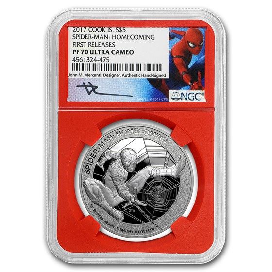One piece 2017 1 oz Silver $5 Mercanti-Designed SPIDERMAN„¢ PF-70 NGC (FR)
