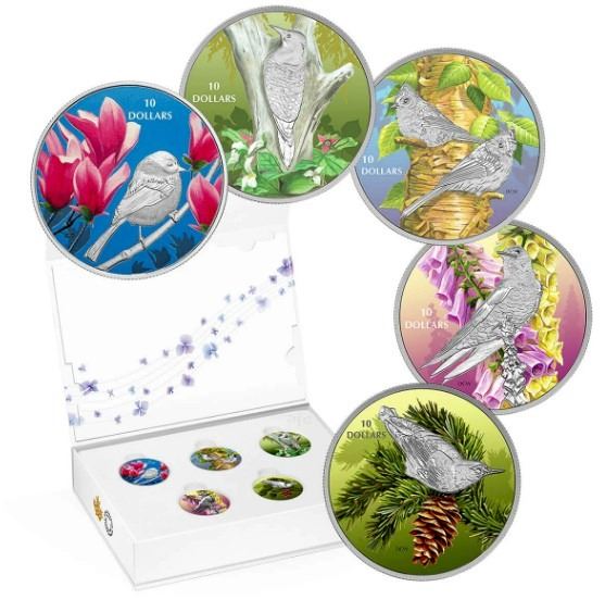 2017 $10 Birds Among Nature's Colours - 5 Coin Pure Silver Set. Tax Exempt.