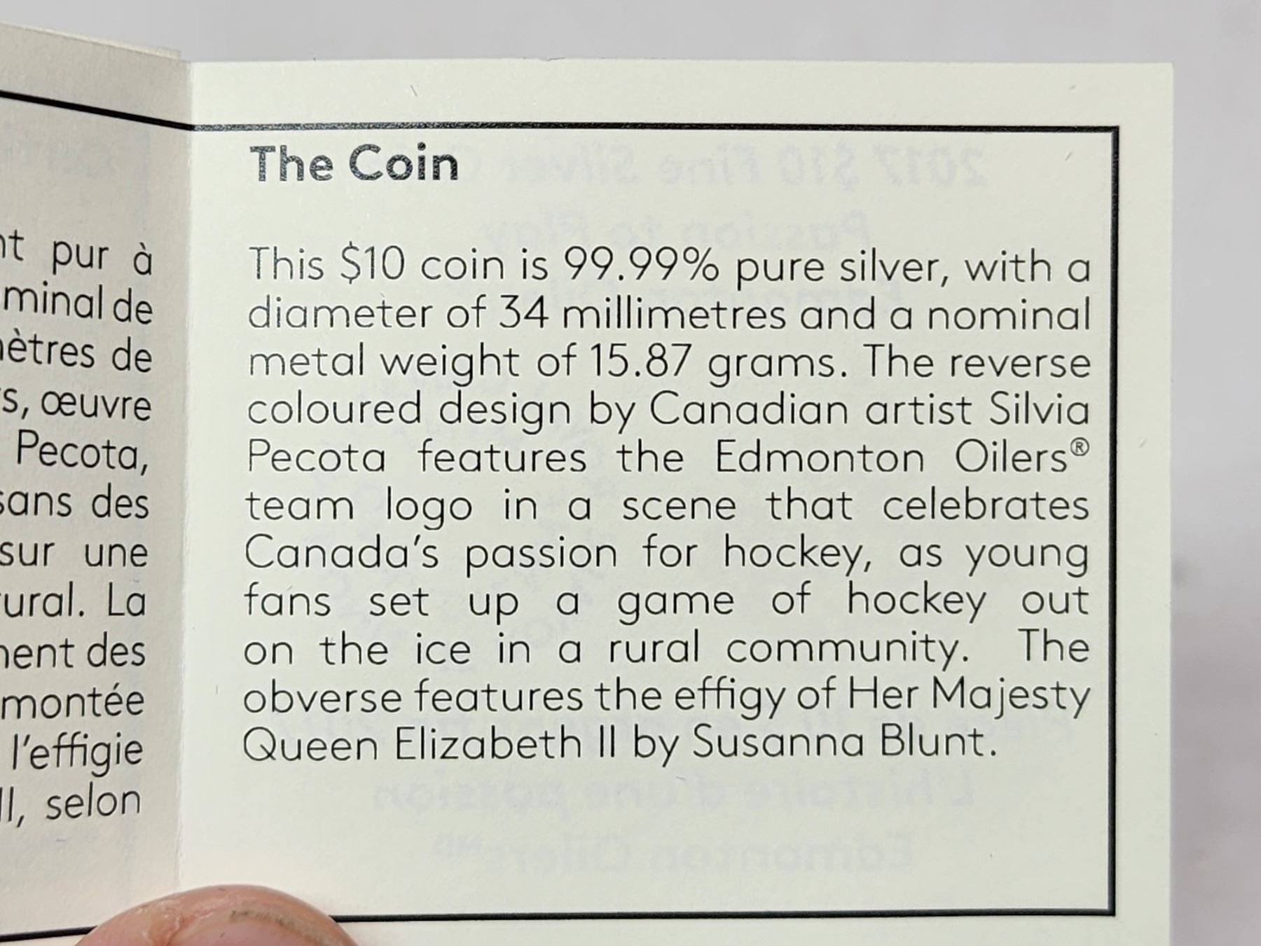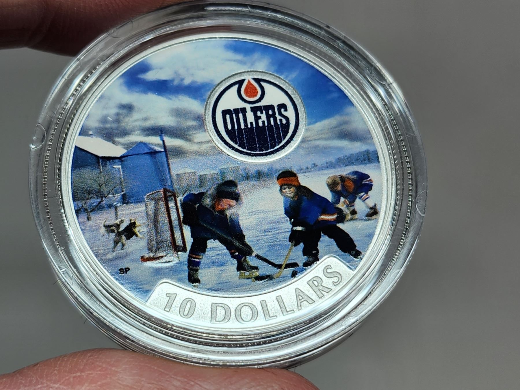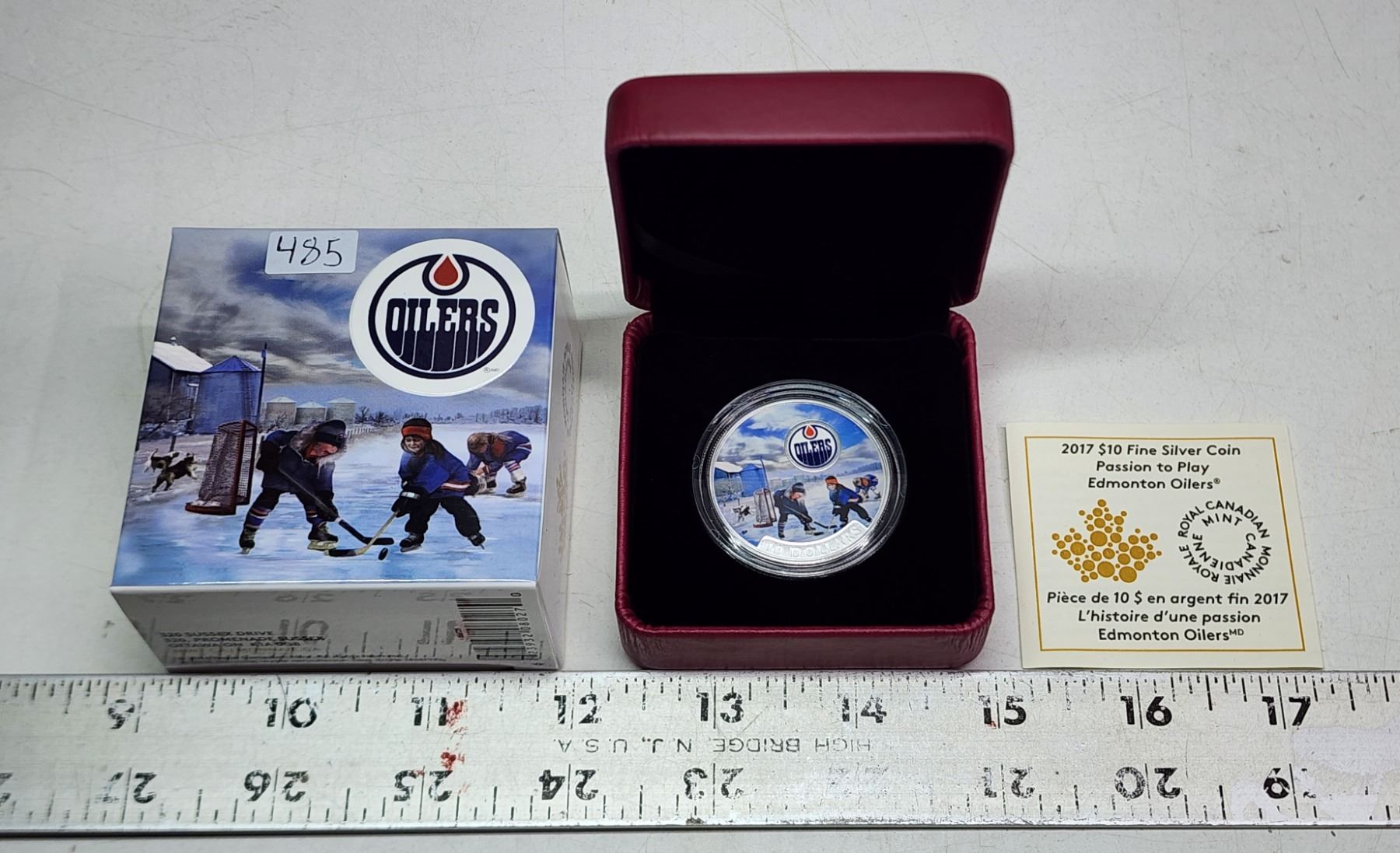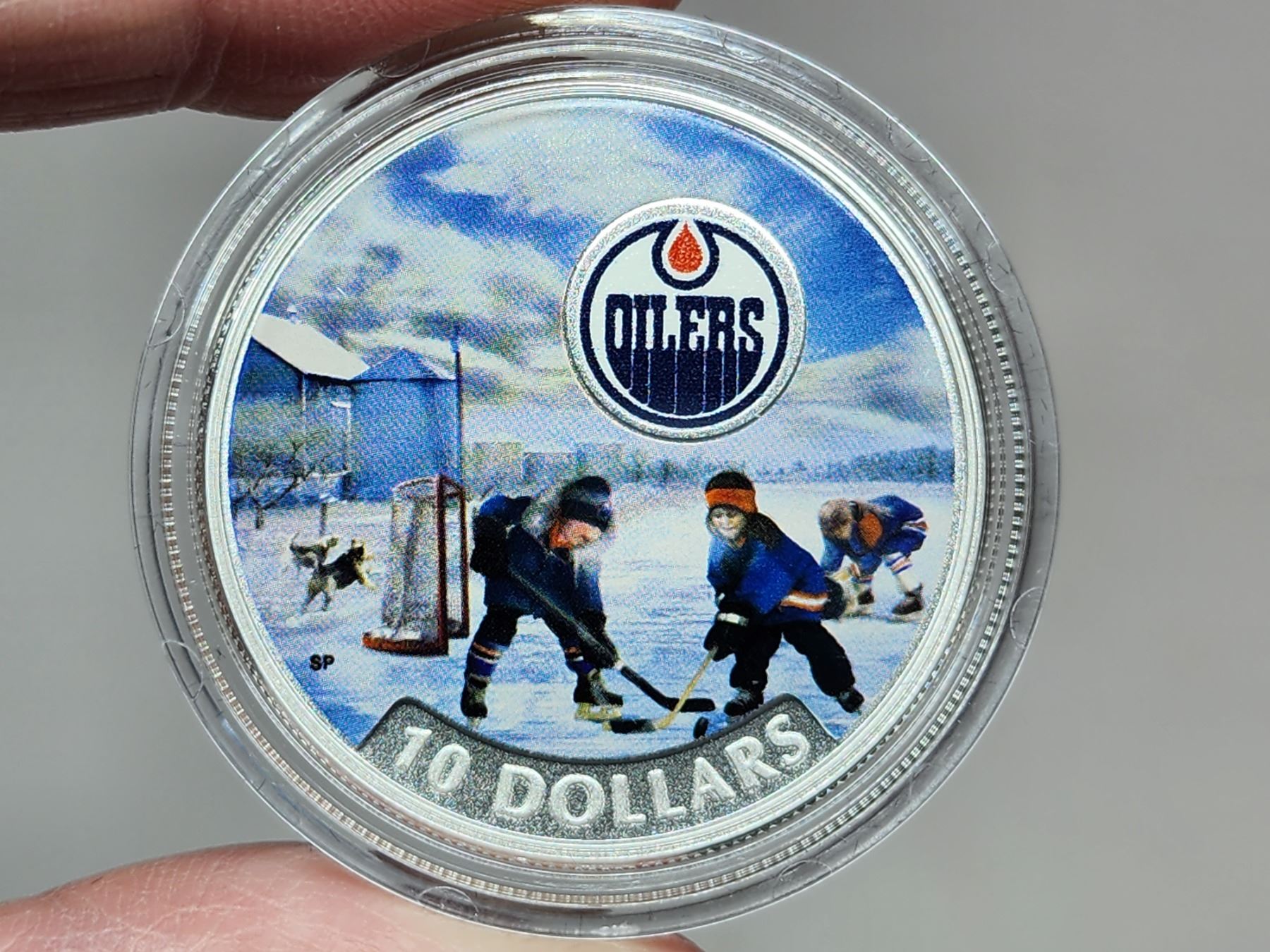 2017 $10 Edmonton Oilers. Colourized. 99.99% pure Silver. Housed in its original RCM case & box of issue.