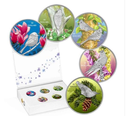2017 $10 Fine Silver Coin-Birds Among Nature`s Colours missing Purple Martin, lot of 4 coins.