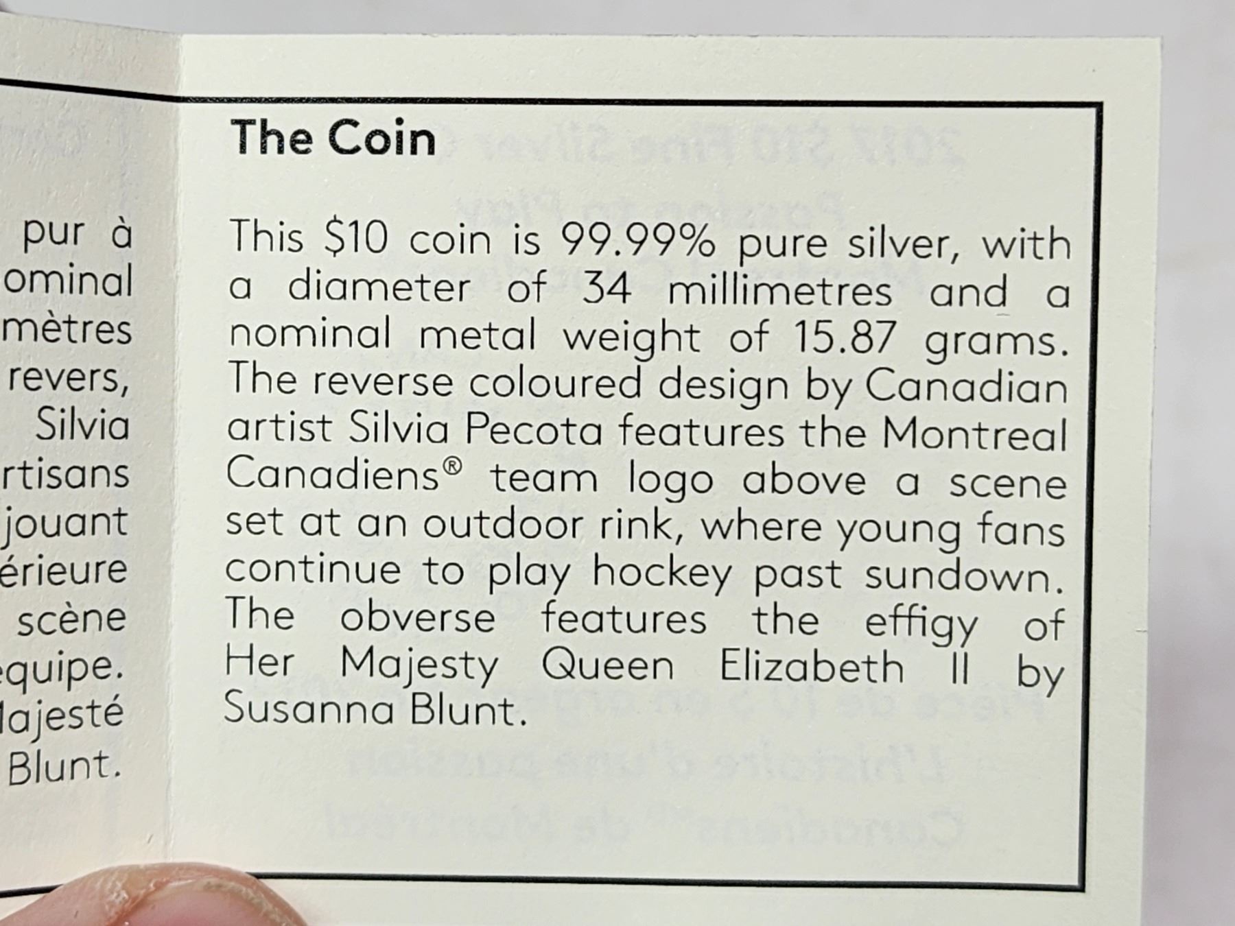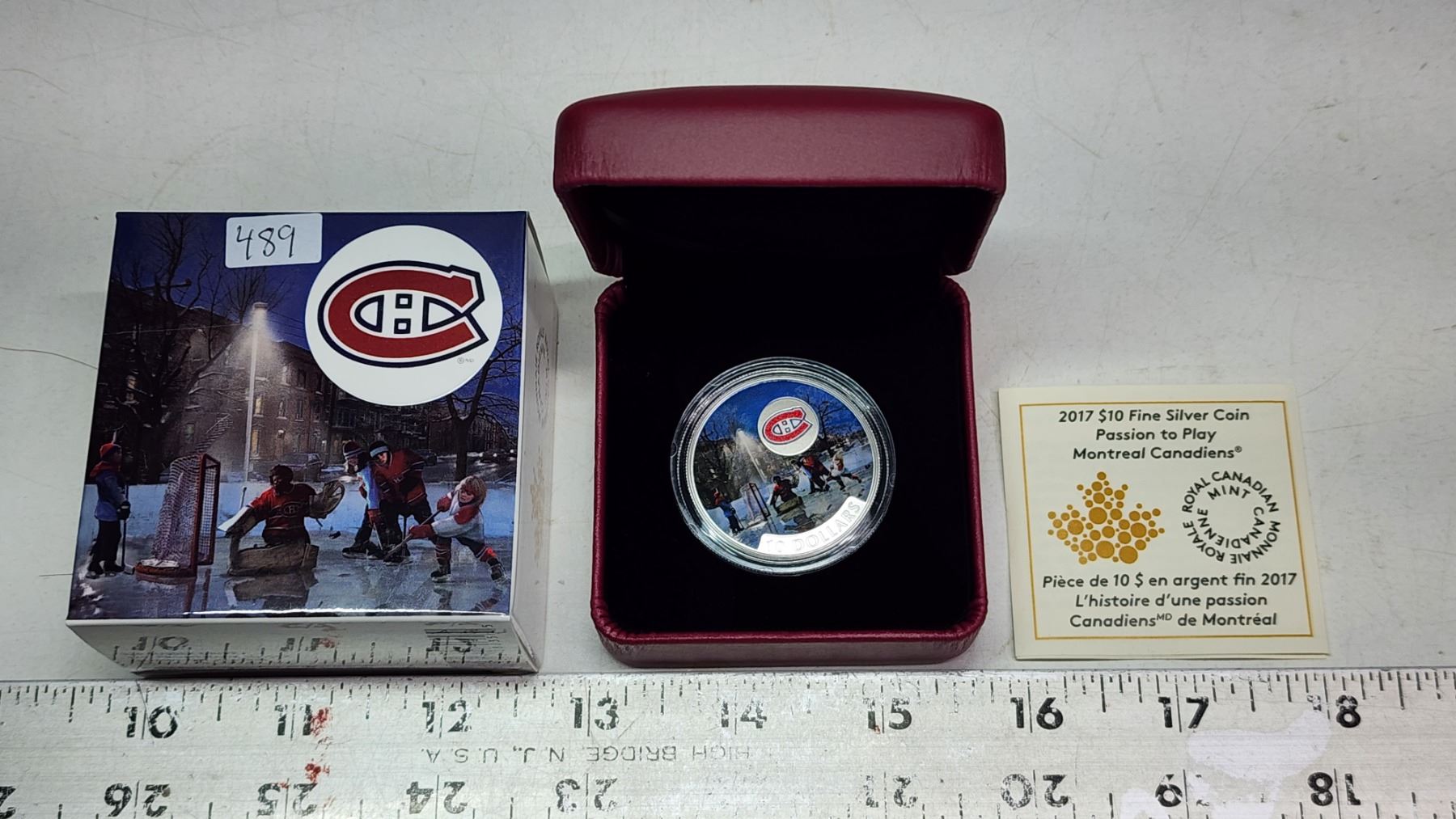 2017 $10 Montreal Canadiens. Colourized. 99.99% pure Silver. Housed in its original RCM case & box of issue.