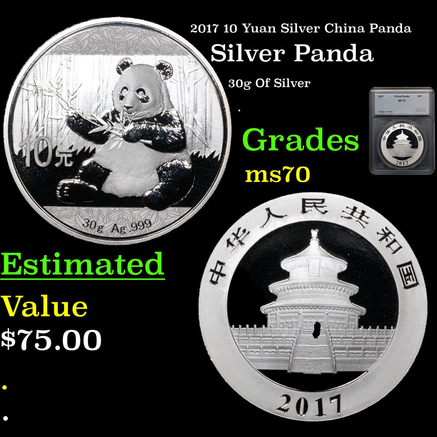 2017 10 Yuan Silver China Panda Graded ms70 by SEGS