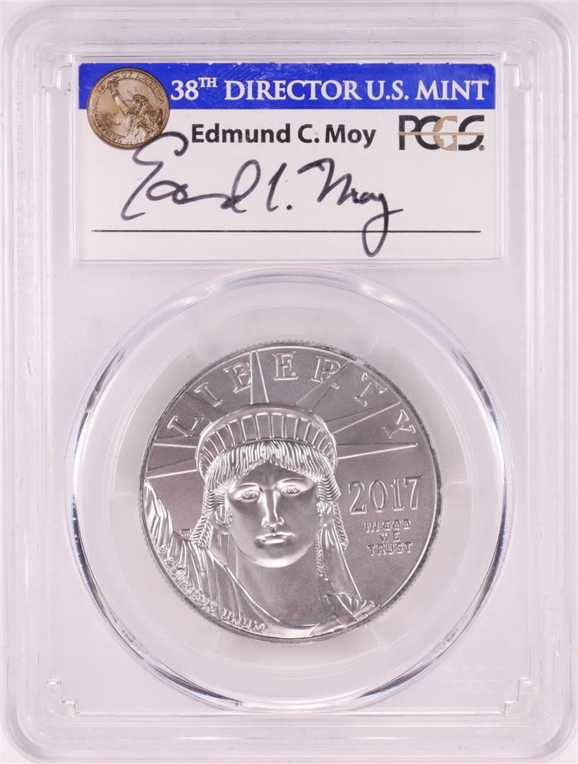 One 2017 $100 American Platinum Eagle Coin PCGS MS70 Edmund Moy Signature First Strike. PCGS Graded.