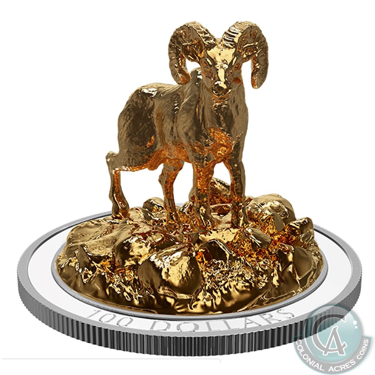 2017 $100 Sculpture of Majestic Canadian Animals - Bighorn Sheep Fine Silver Coin (Tax Exempt)