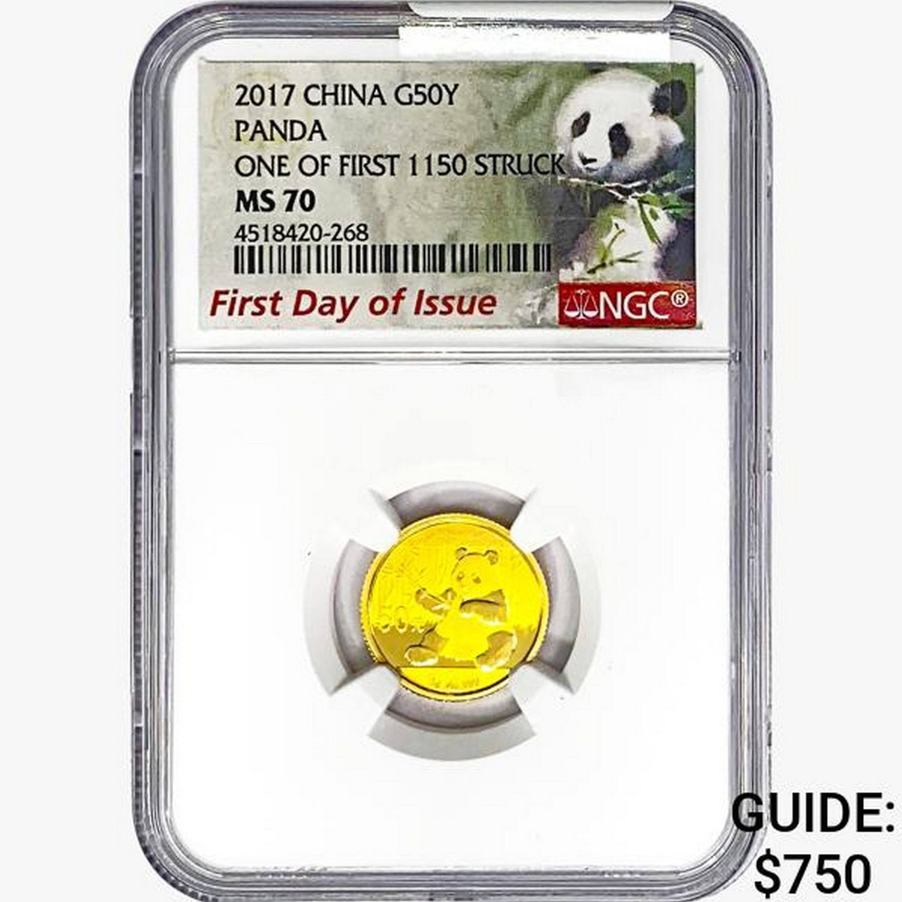 2017 .1058oz. Gold 50 Yuan China Panda NGC MS70