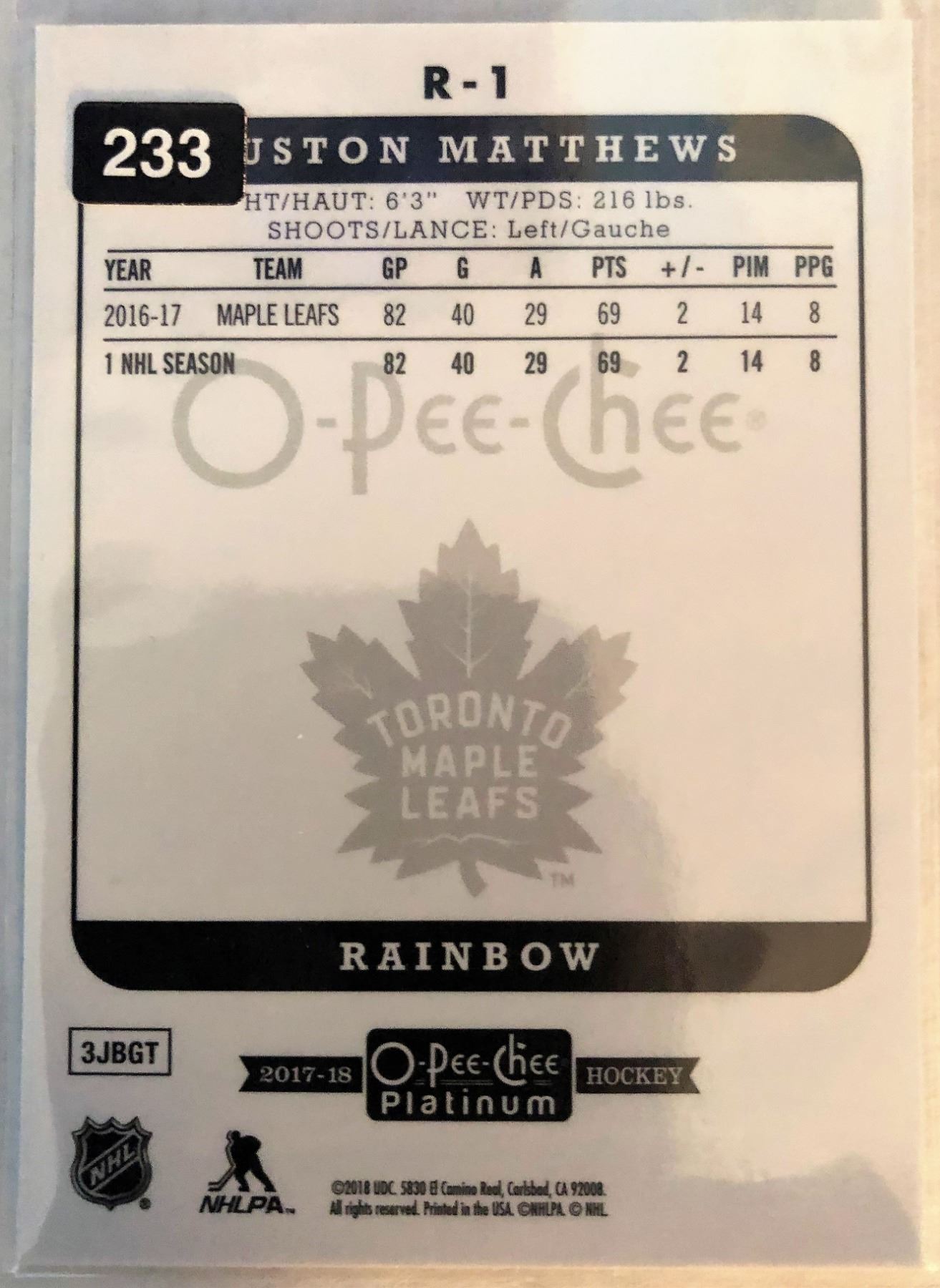 2017-18 O-Pee-Chee Auston Matthews Retro Rainbow #R-1