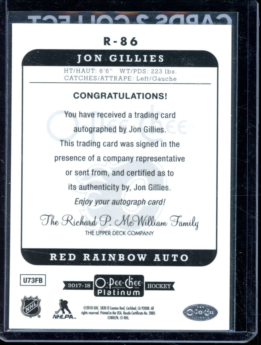 2017-18 O-Pee-Chee Platinum Retro Rainbow Red #R86 Jon Gillies Autograph