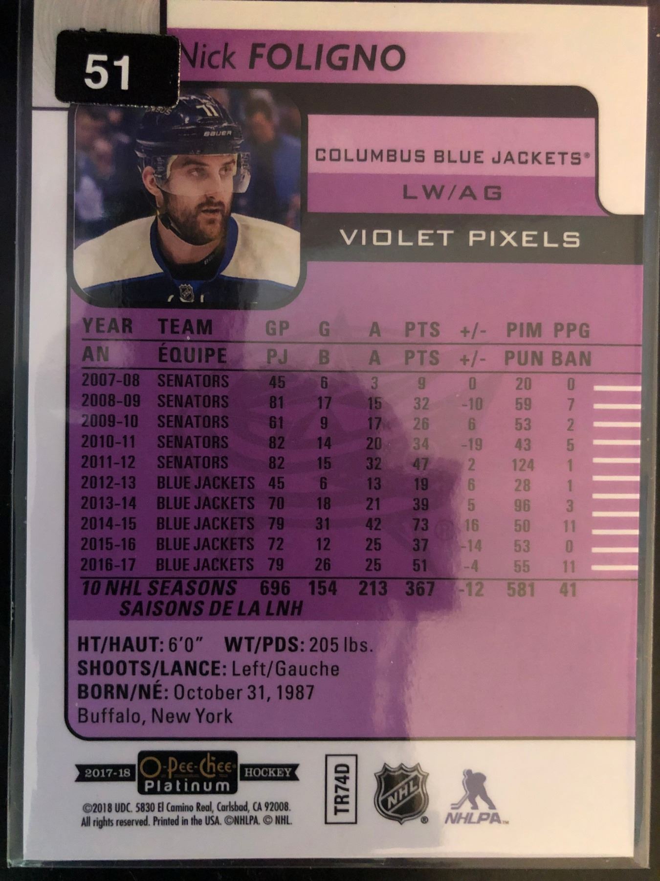 2017-18 O-Pee-Chee Violet Pixel Nick Foligno #44