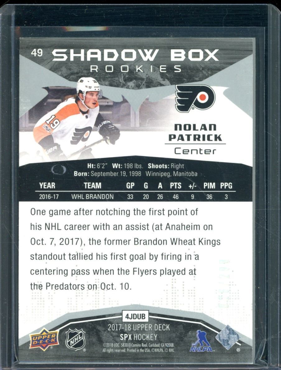 2017-18 SPx Shadow Box #49 Nolan Patrick Rookie Card 26/298 BV $35