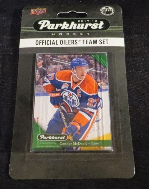 Set includes Sekra, Talbot, McDavid, Yamamoto, Draisaitl, Lucic, Oilers Team Card, Klefbom, Maroon & Nugent-Hopkins