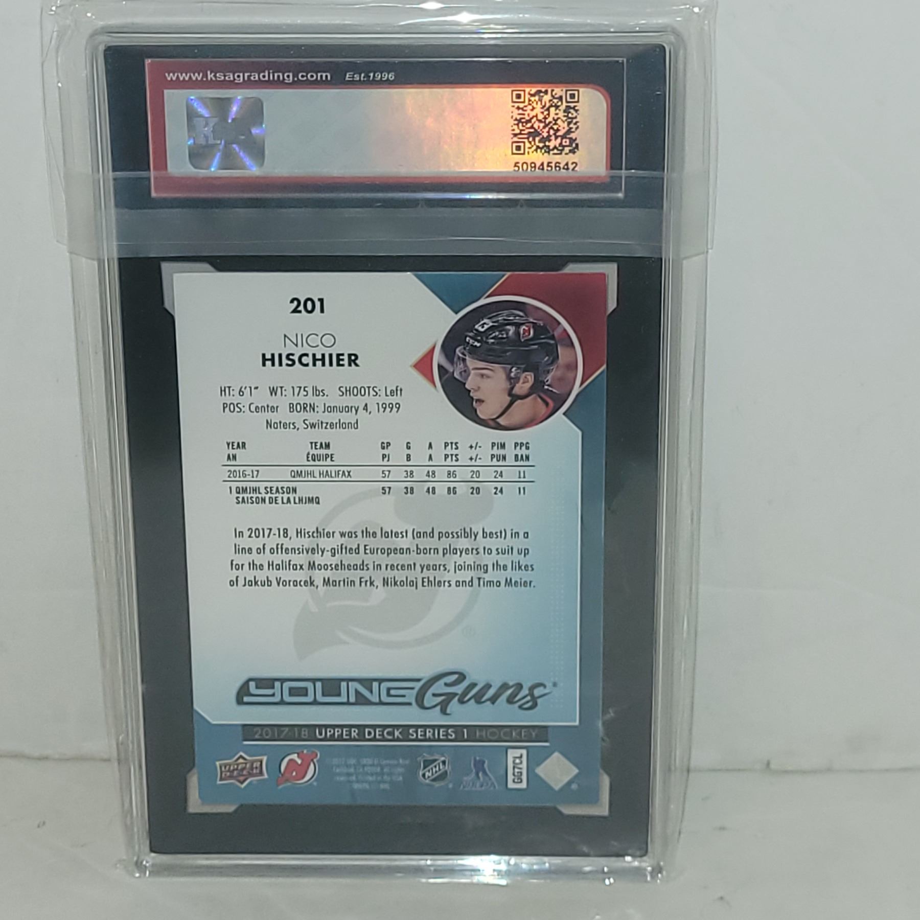 2017-18 Upper Deck #201 Nico Hischier Rookie Card - Graded 8.5 NMM+ KSA