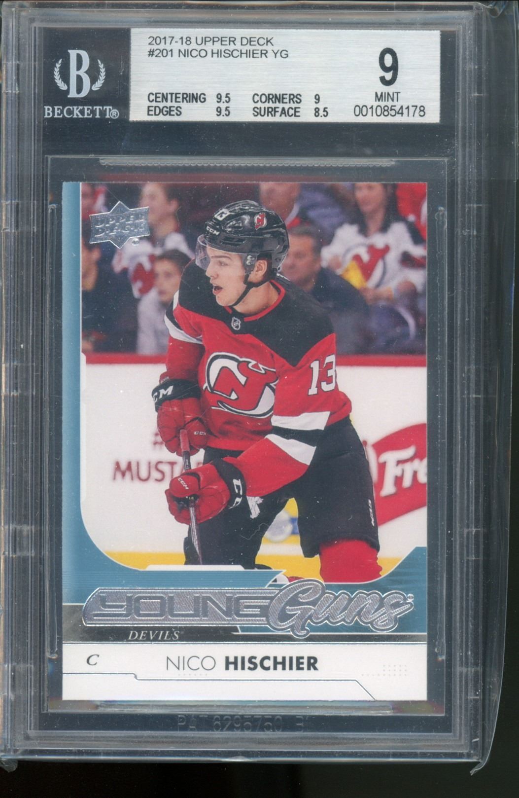 2017-18 Upper Deck #201 Nico Hischier YG RC BGS Graded 9 Mint