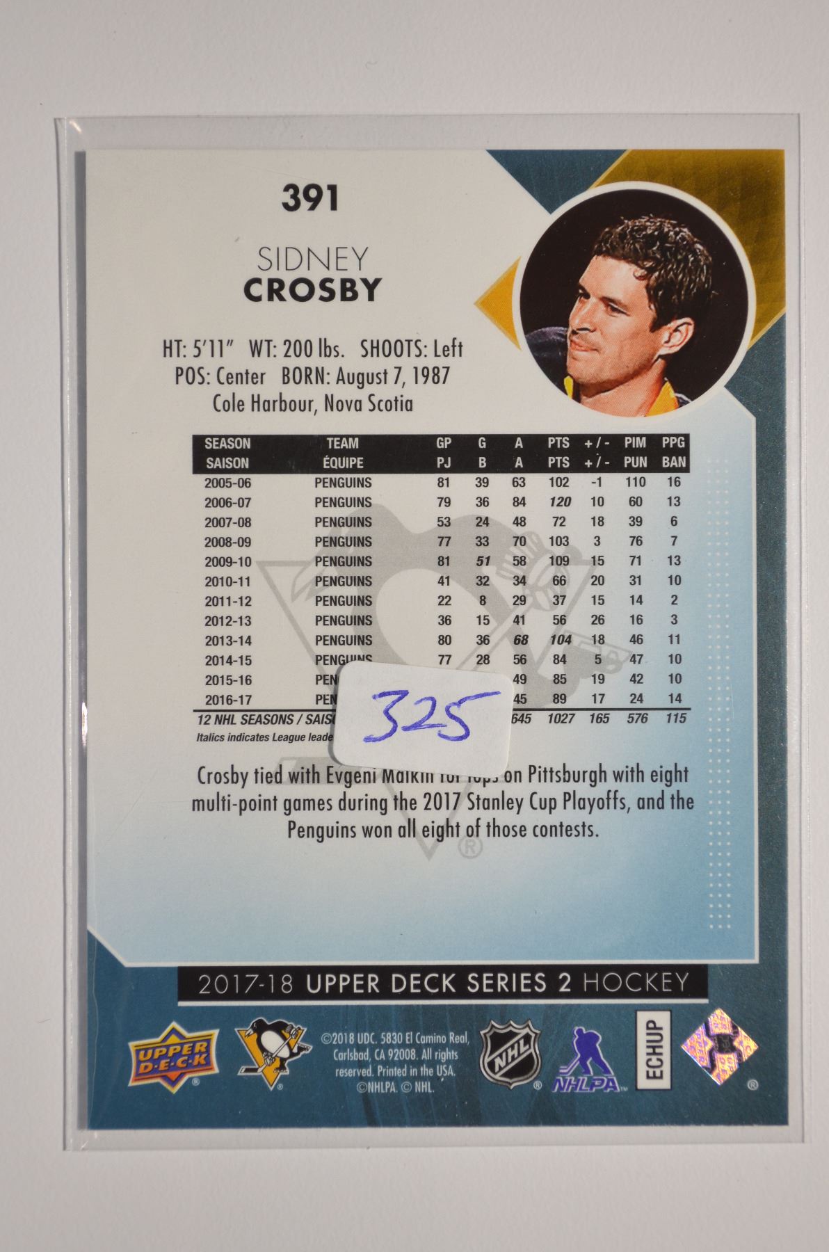 2017-18 Upper Deck #391 Sidney Crosby
