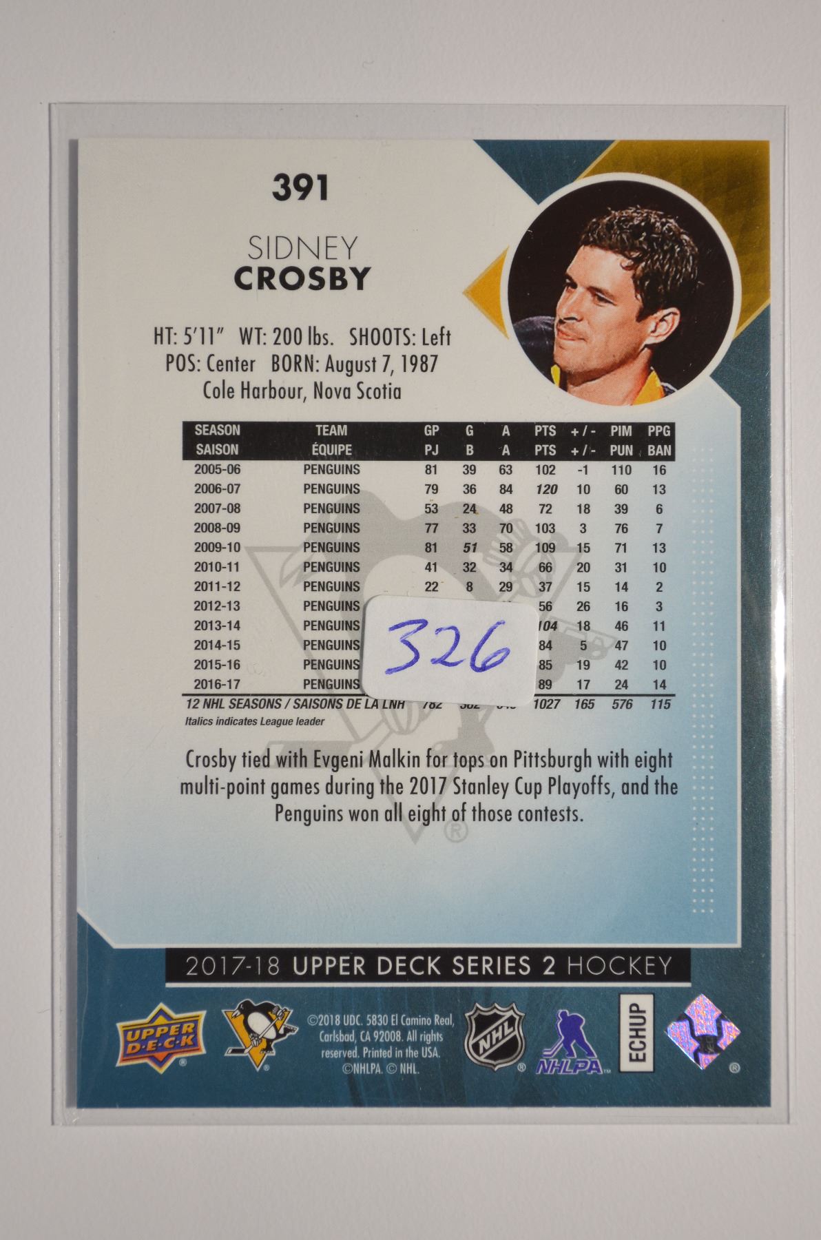 2017-18 Upper Deck #391 Sidney Crosby