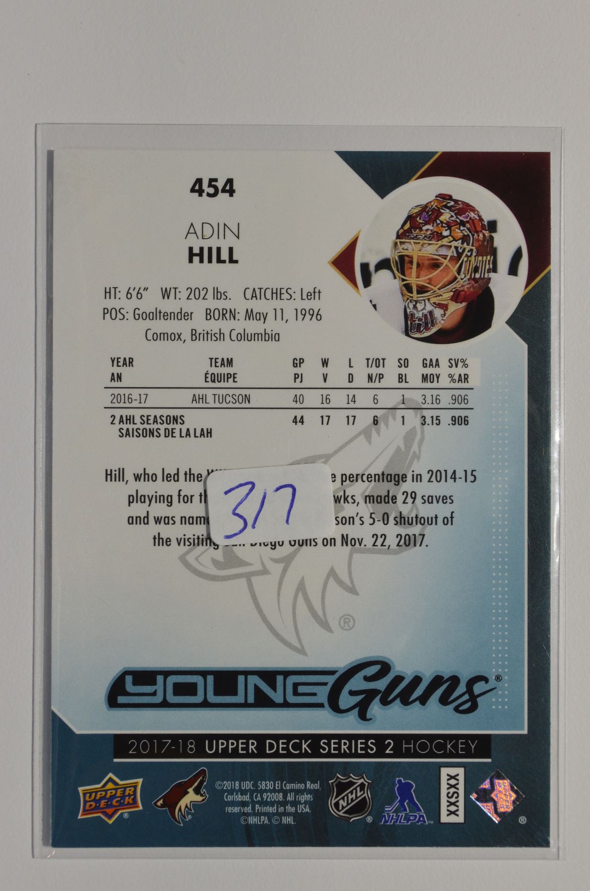 2017-18 Upper Deck #454 Adin Hill YG RC