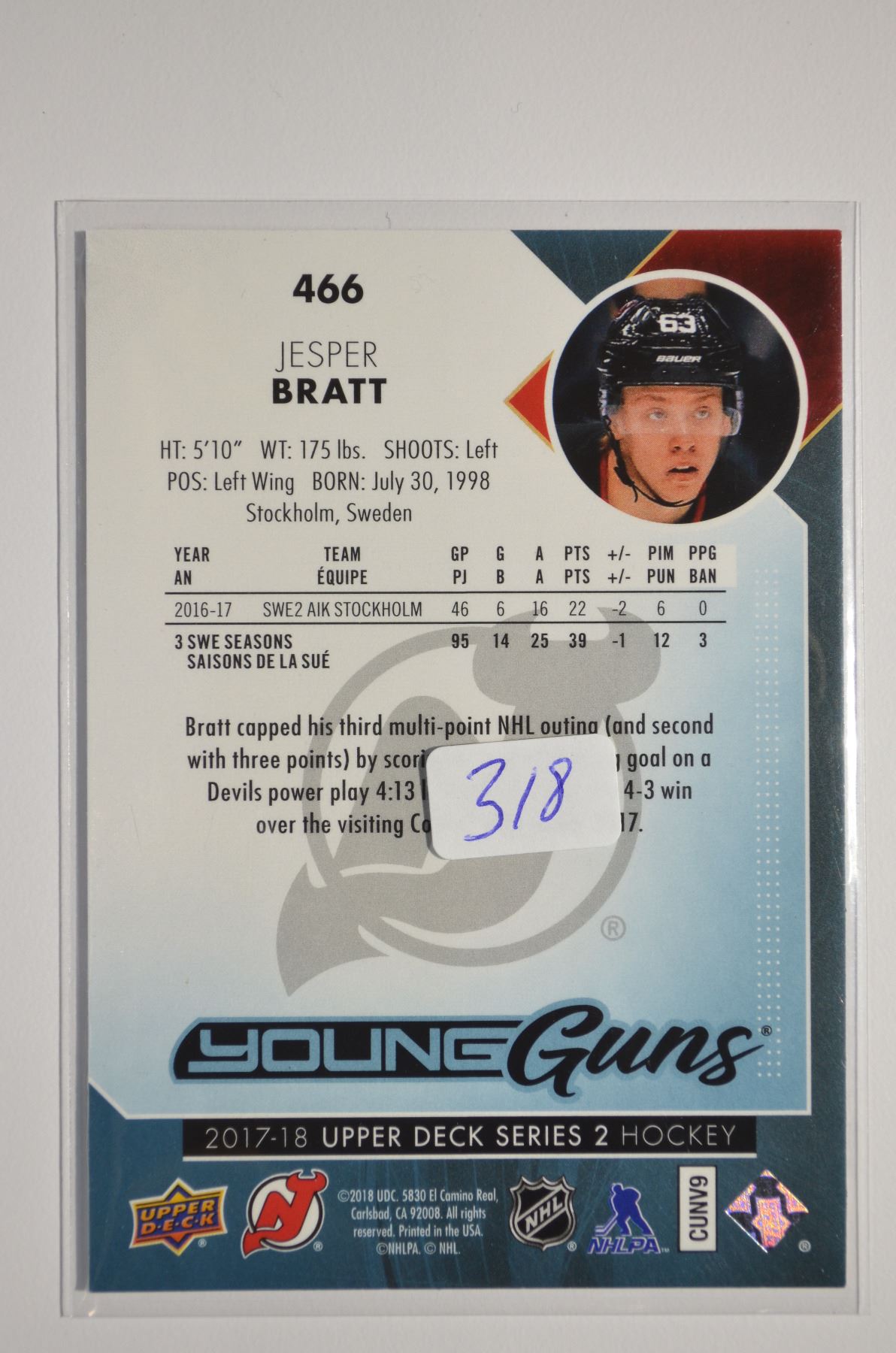 2017-18 Upper Deck #466 Jesper Bratt YG RC