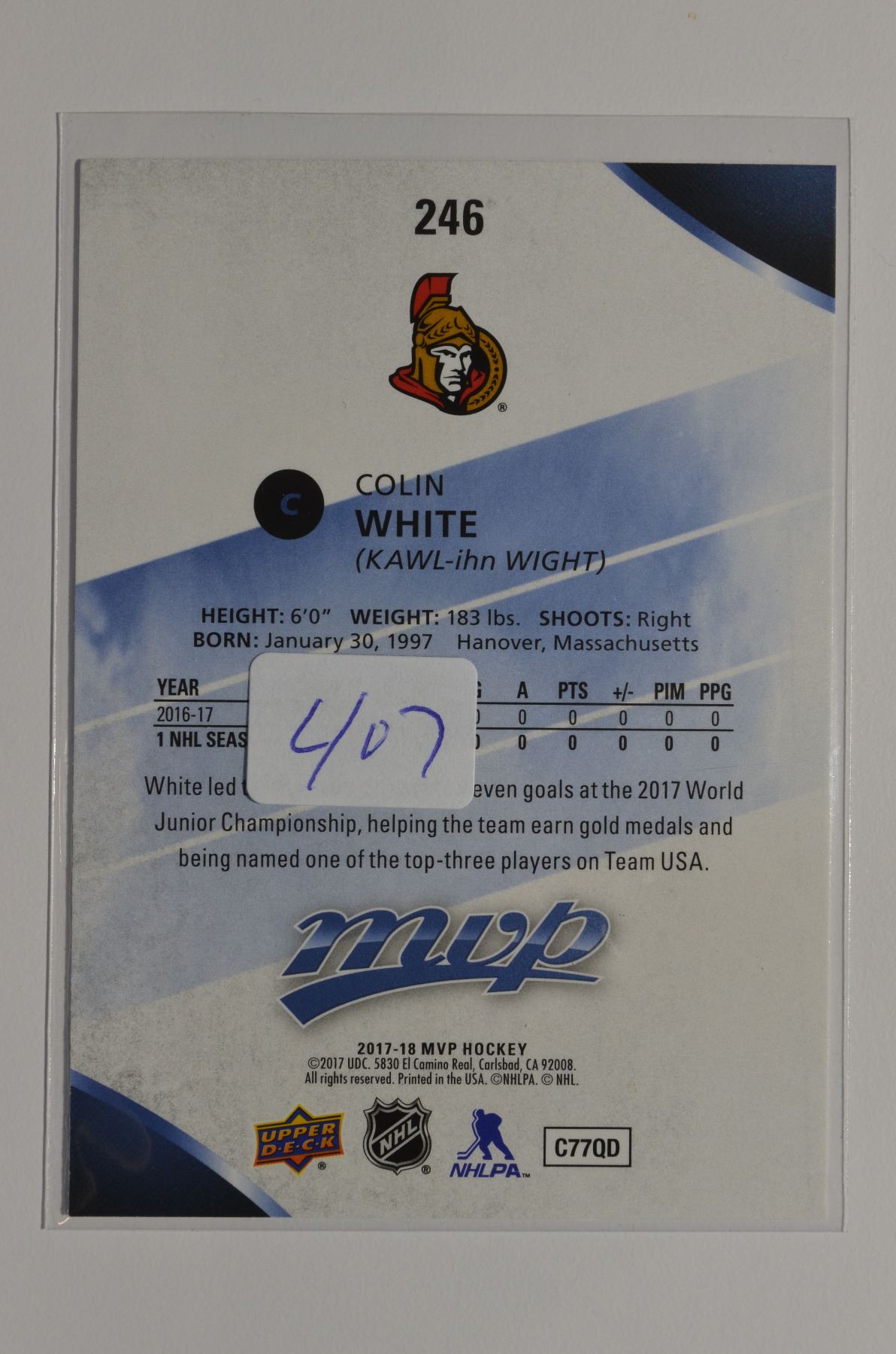 2017-18 Upper Deck MVP #246 Colin White RC