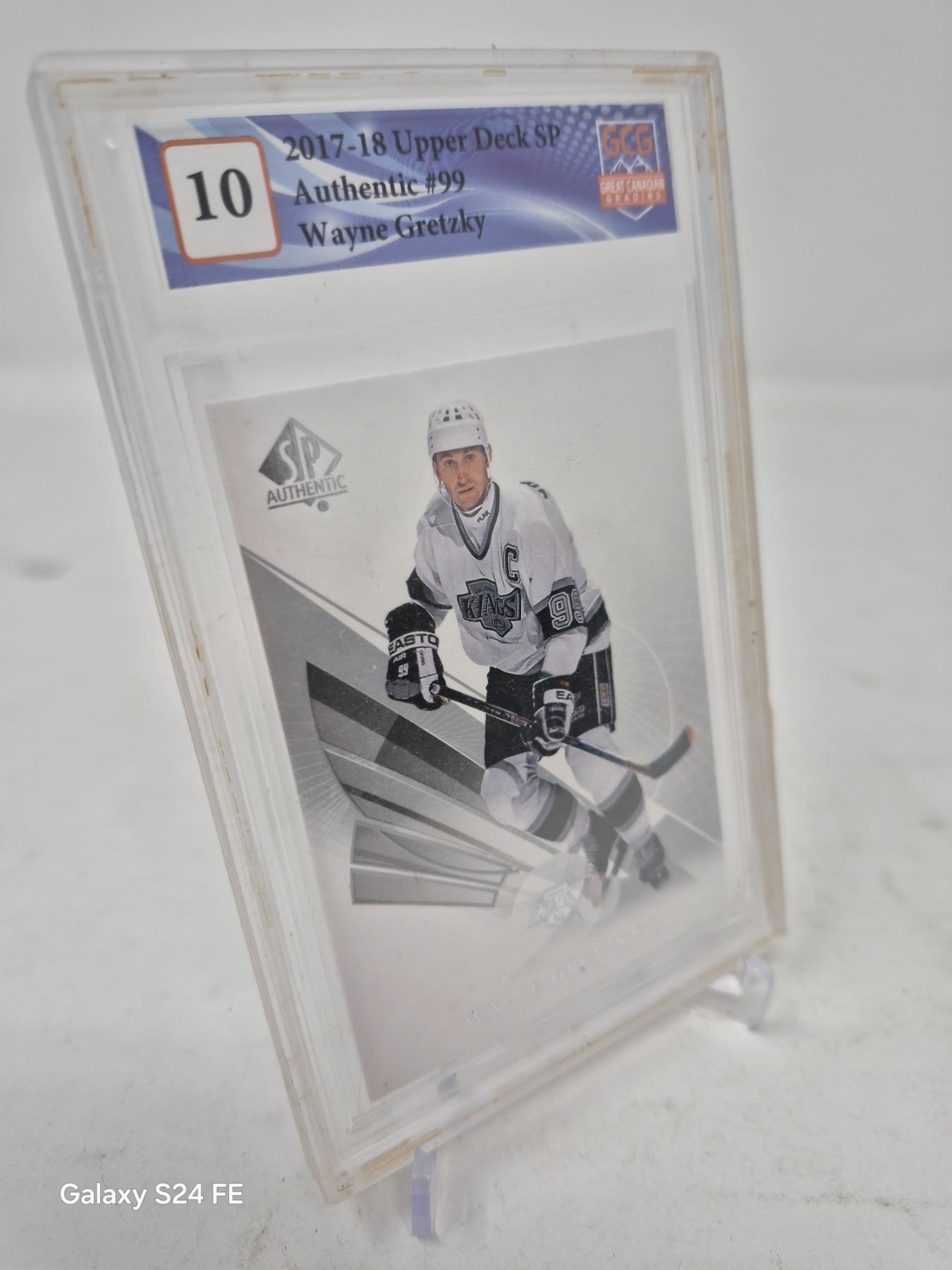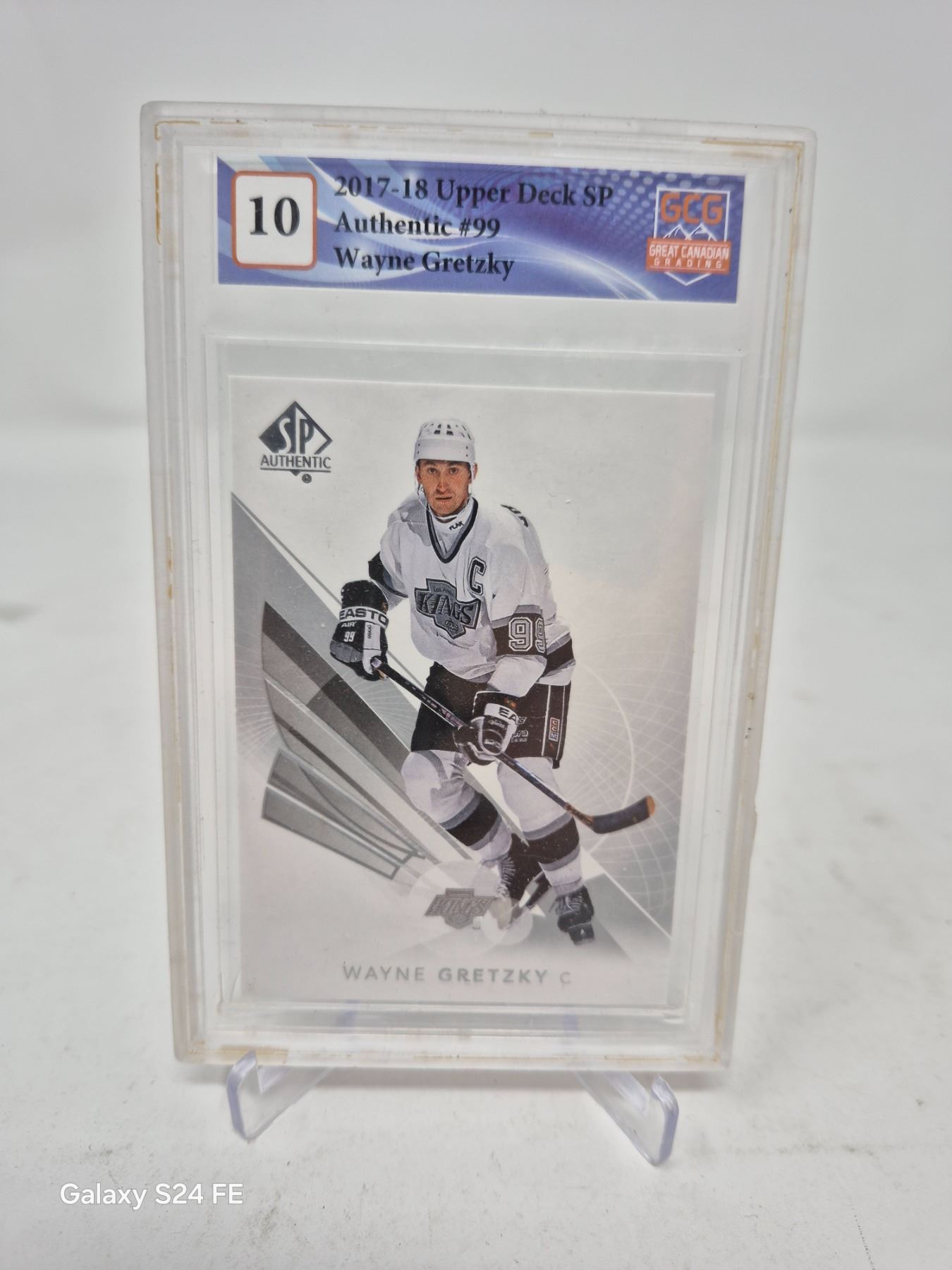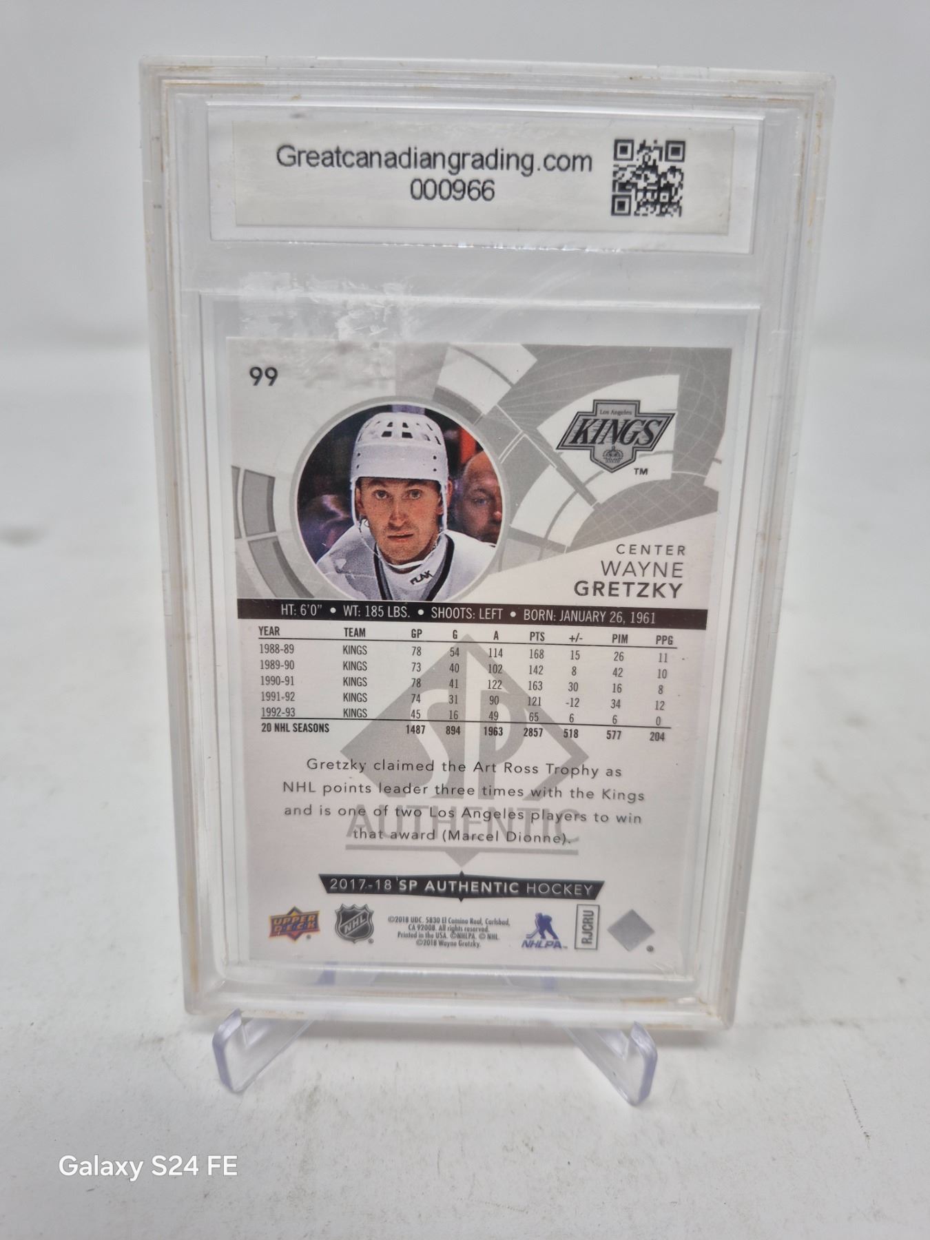 Gem Mint 10! Stunning 2017-18 SP Authentic #99 Wayne Gretzky trading card graded by Great Canadian Grading. Features “The Great One” in Kings gear.