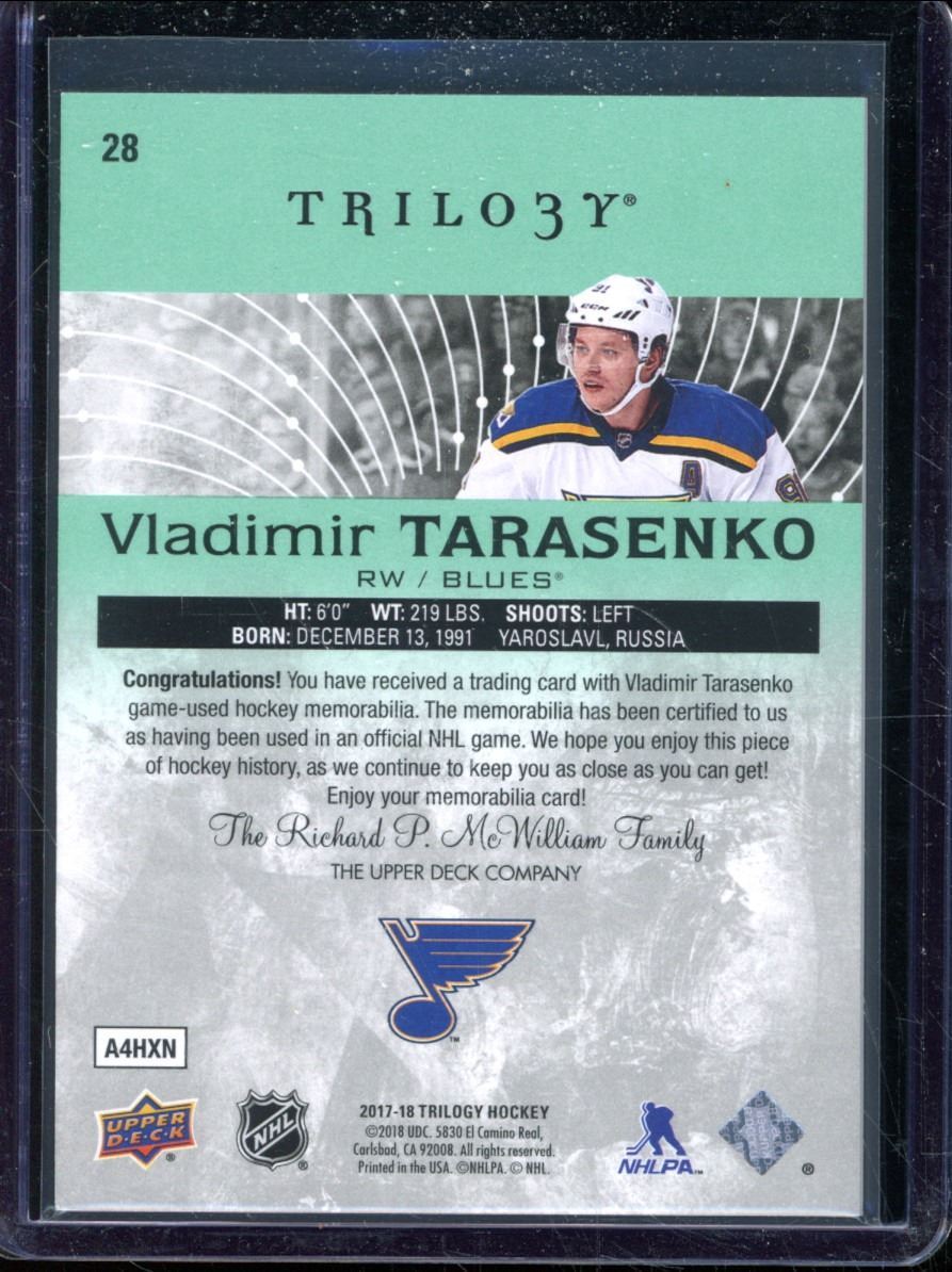 2017-18 Upper Deck Trilogy Green #28 Vladimir Tarasenko JSY 5/139