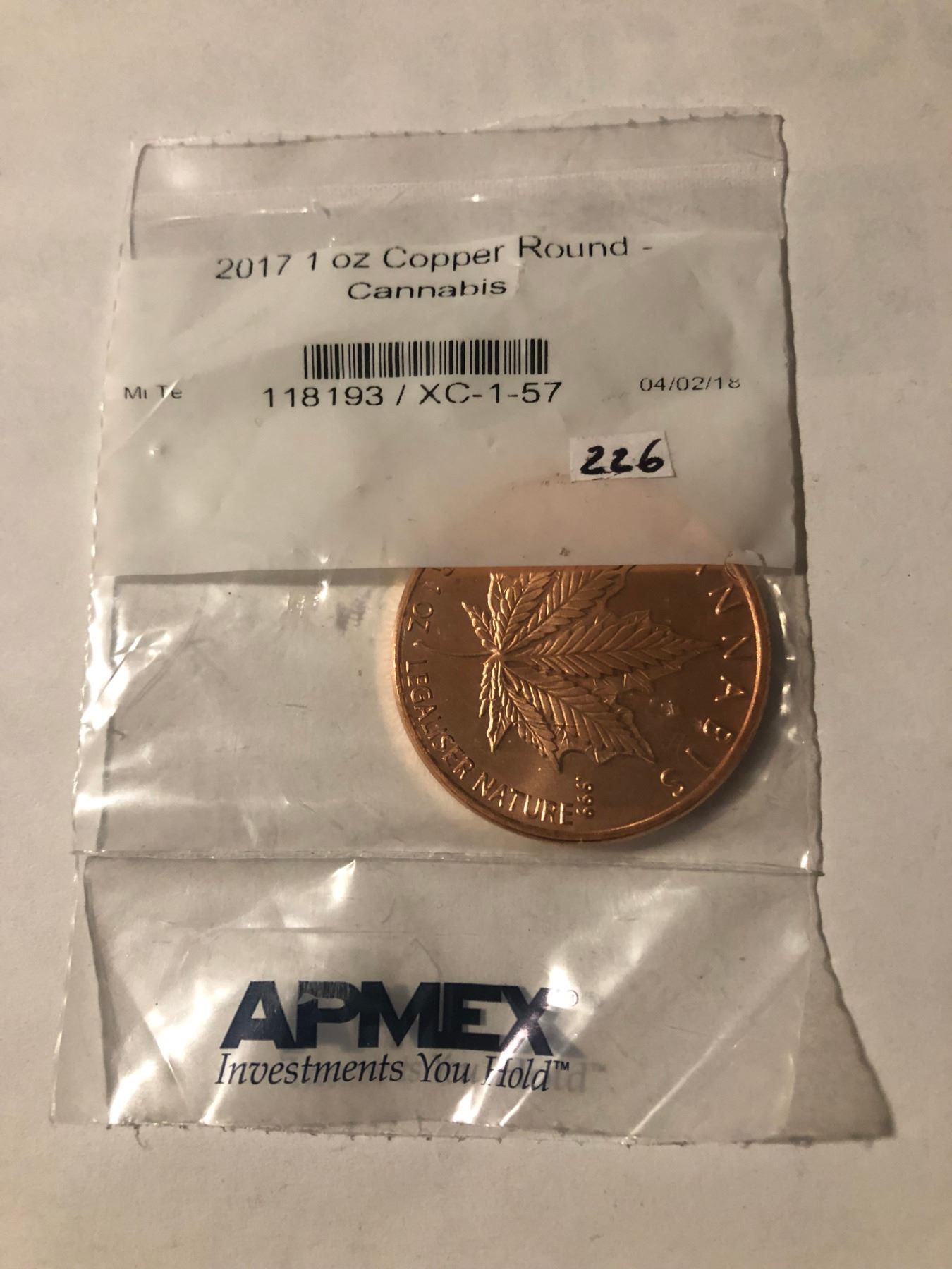 2017 1oz Copper CANNABIS Coin New in APMEX Original Package