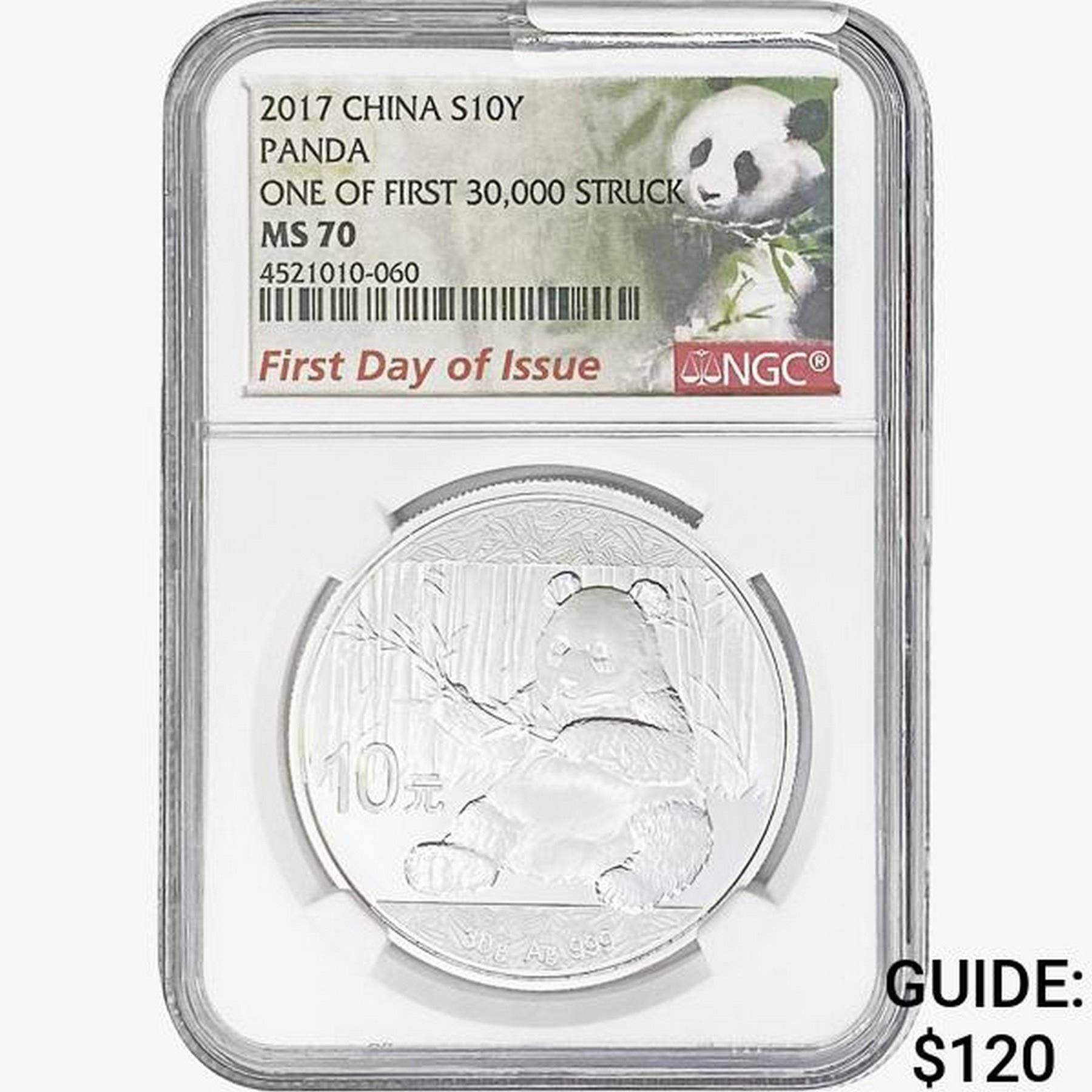 2017 1oz. Silver China Panda 10 Yuan NGC MS70 FDI