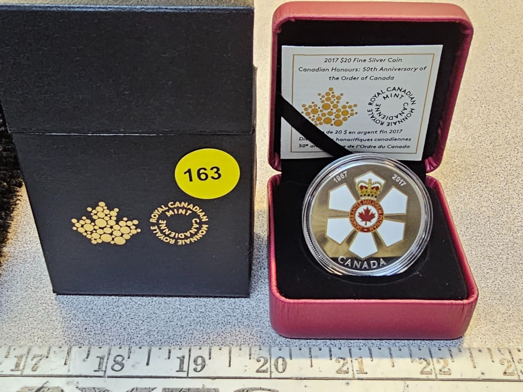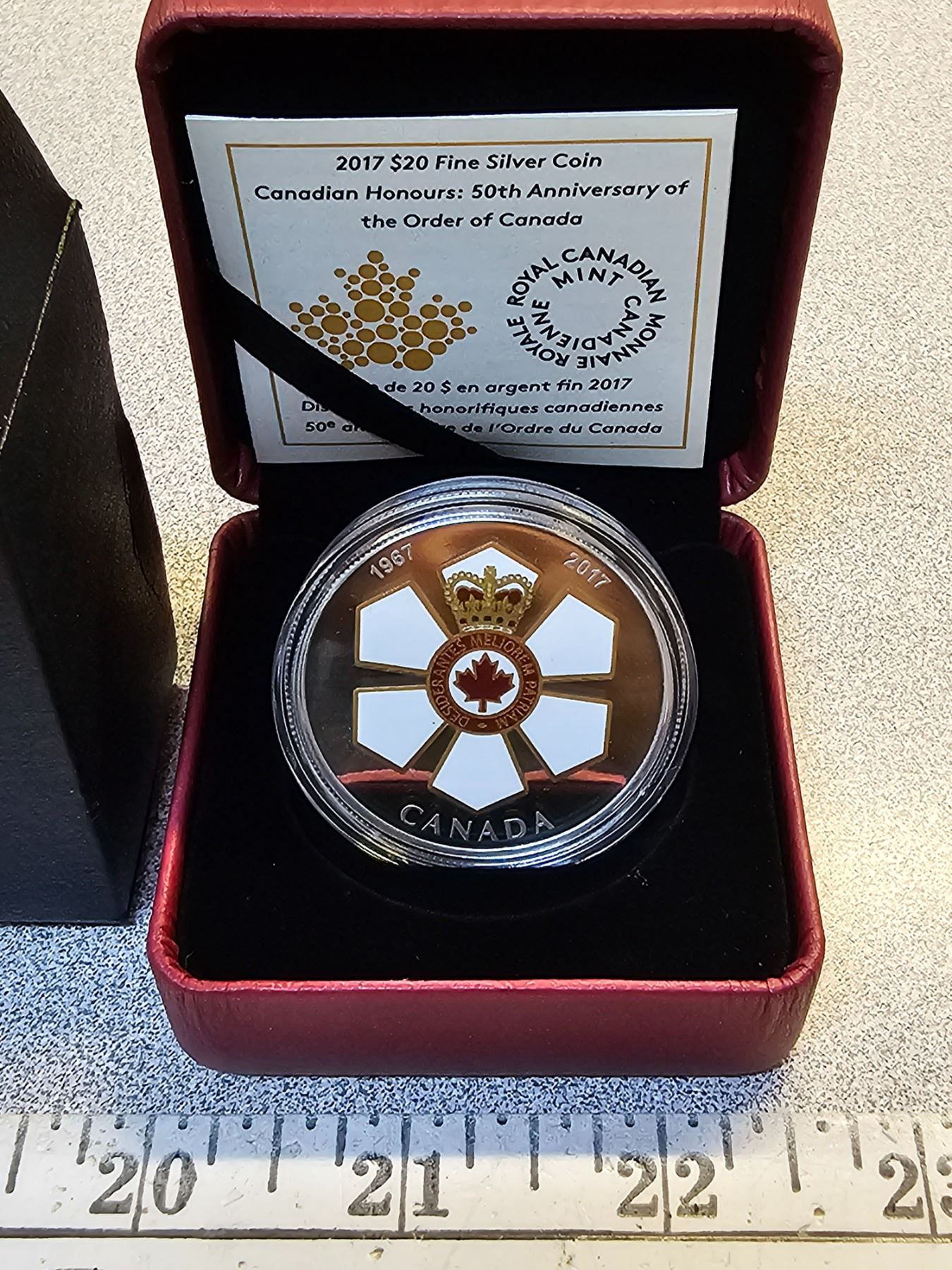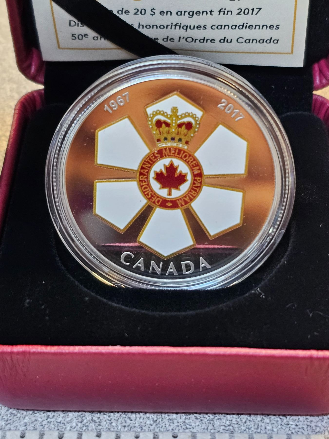 2017 $20 Canadian Honours Series: 50th Anniversary of the Order of Canada. Colourized. Proof with Ultra Heavy Cameo. 99.99% pure Silver. Housed in its original Royal Canadian Mint case & box of issue, along with a Certificate of Authenticity.