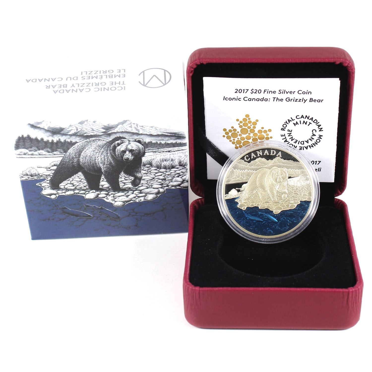 2017 $20 Iconic Canada - The Grizzly Bear Fine Silver Coin (capsule lightly scratched & coin toned). TAX Exempt