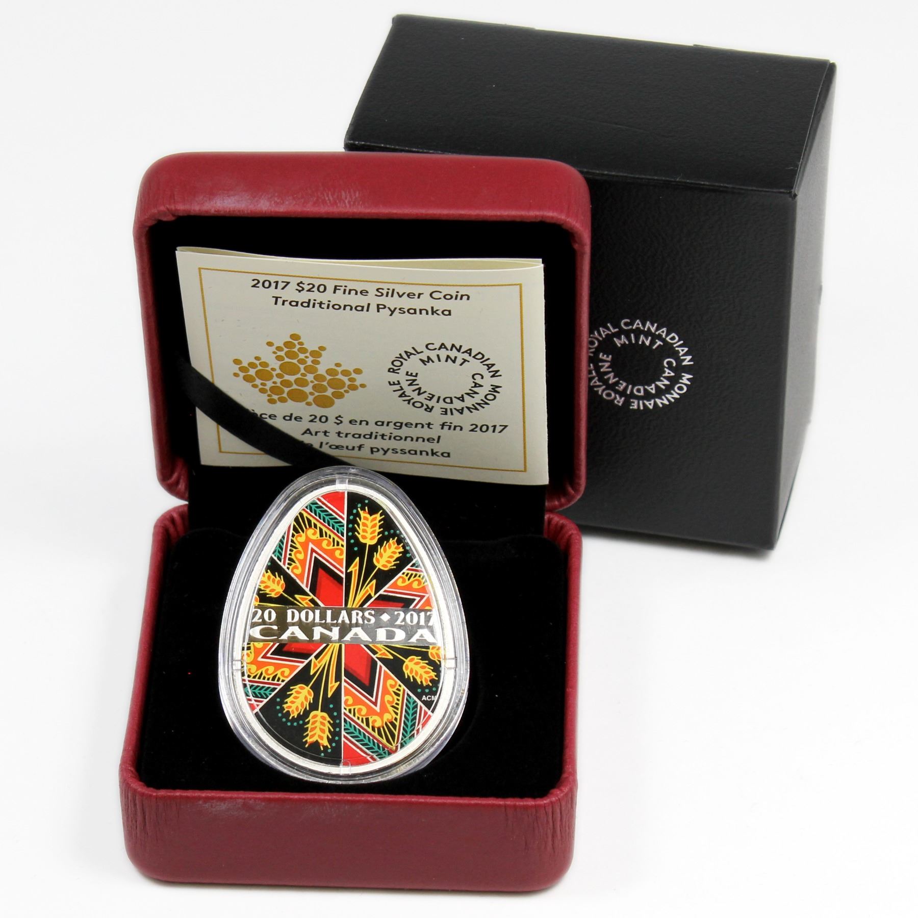 2017 $20 Traditional Pysanka Egg Shaped 1oz Fine Silver Coloured Coin. Mintage of only 5000! (TAX Exempt)