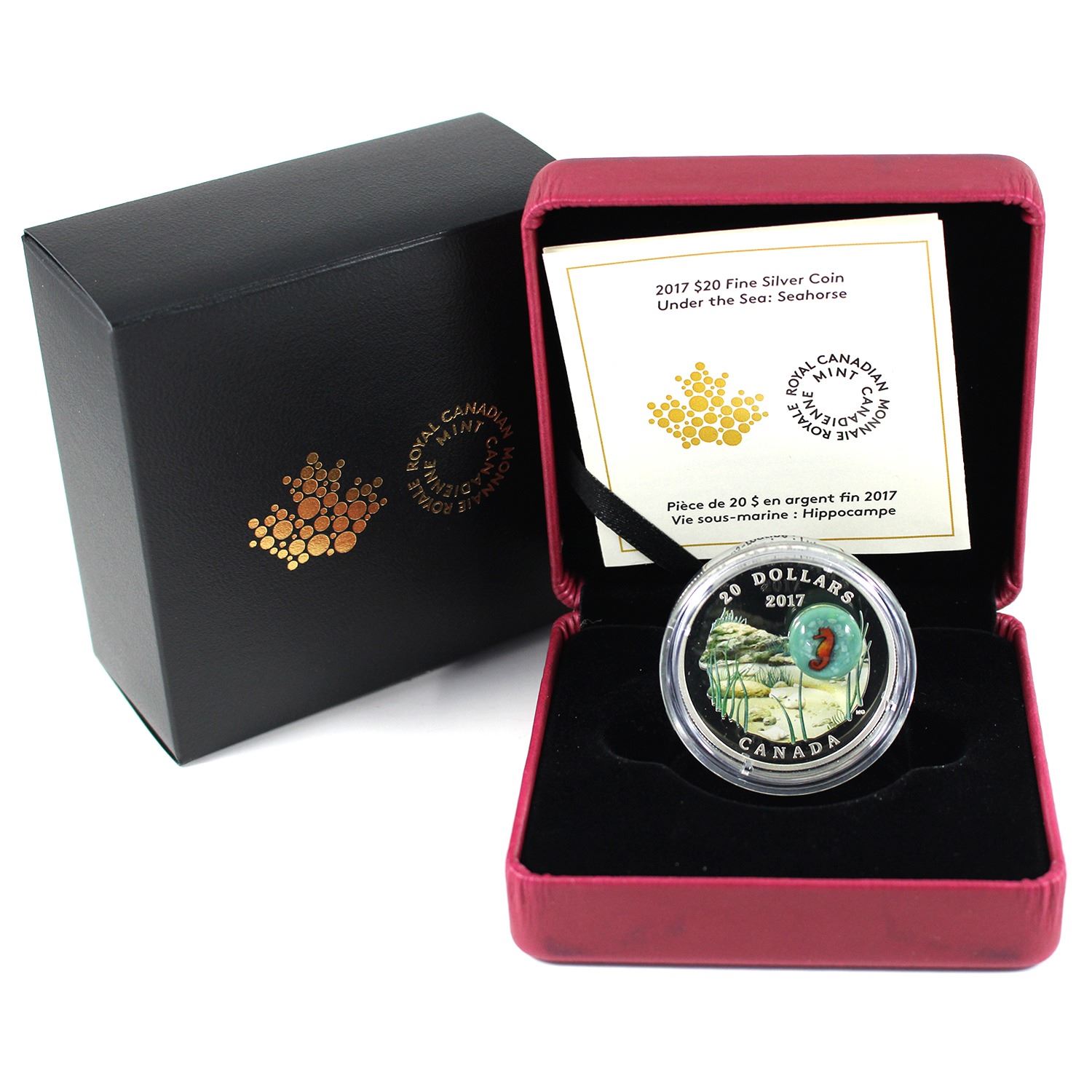 2017 $20 Under the Sea-Seahorse Fine Silver w/ Glass Seahorse Embellishment. Discolouration on edges of clamshell case; scratched capsule