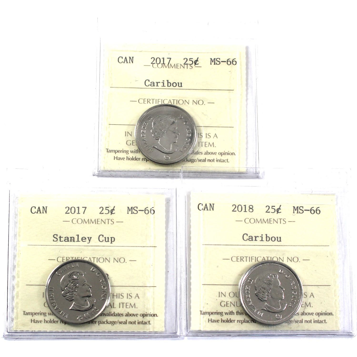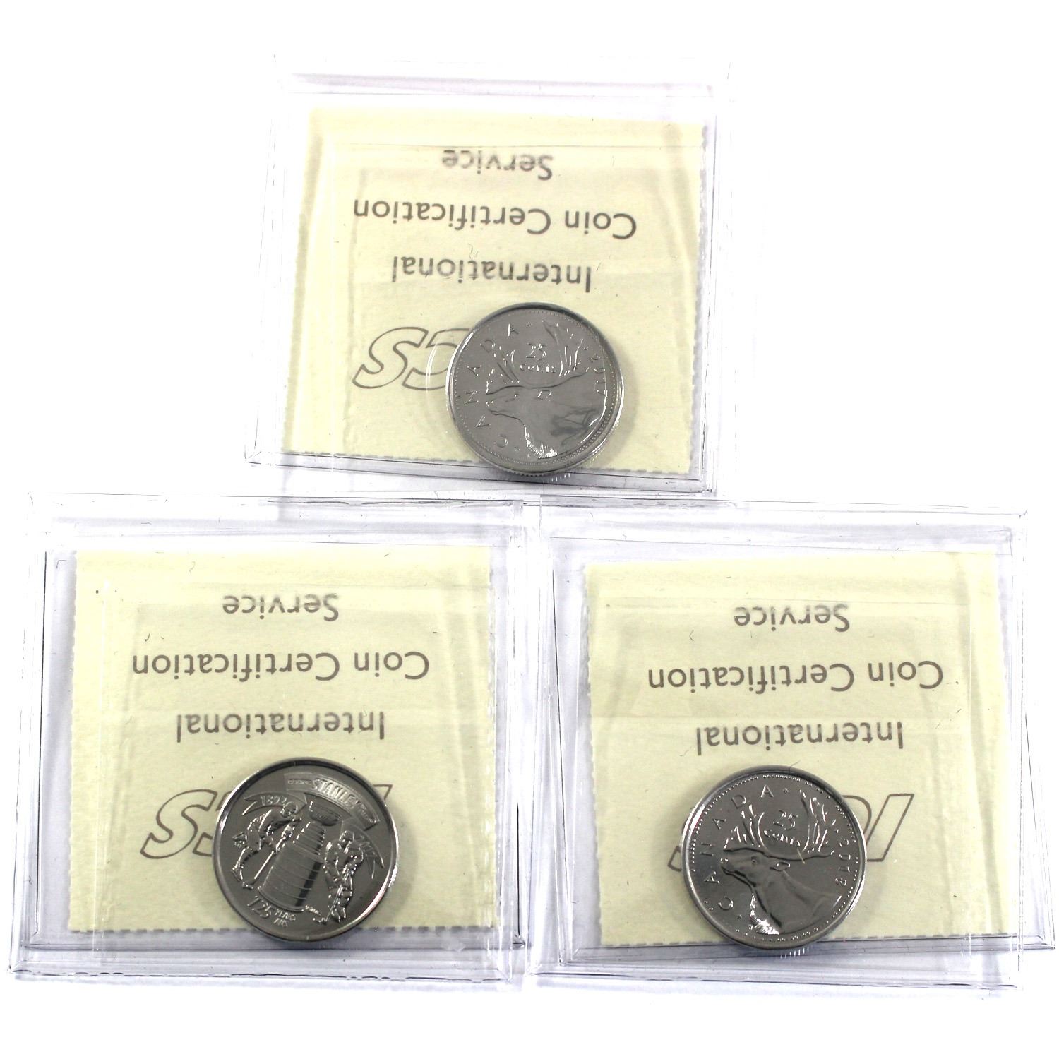 2017, 2017 Stanley Cup & 2018 Canada 25-cent ICCS Certified MS-66. 3pcs