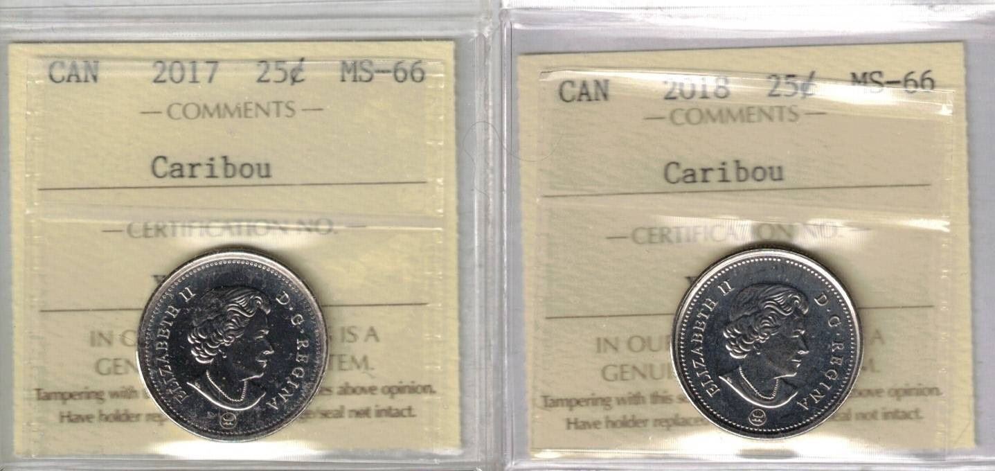 2017-2018 25¢ Caribou ICCS MS66, 2Pcs