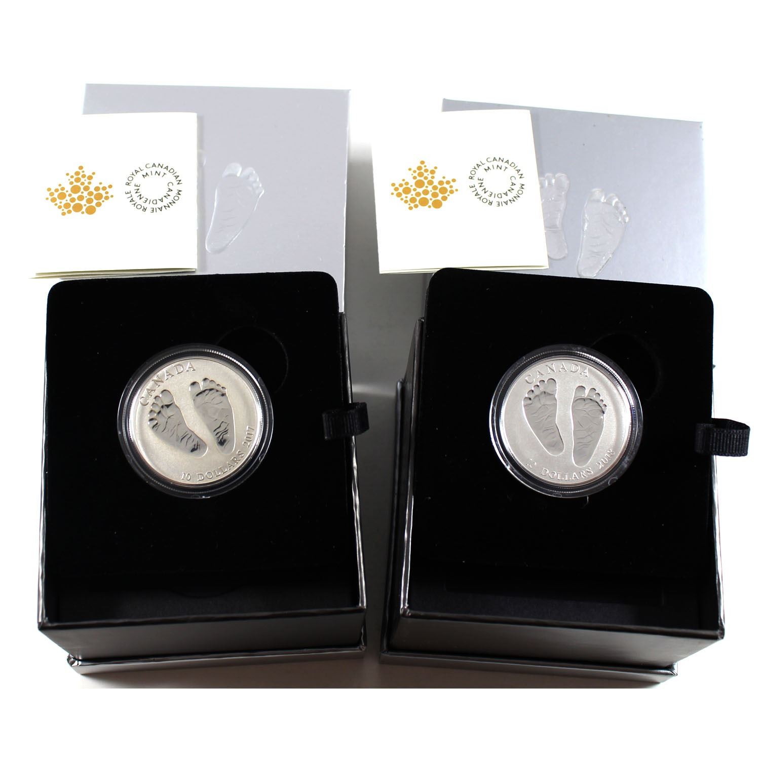 2017 & 2018 Canada $10 Welcome to the World Baby Feet Fine Silver Coins (2018 capsule is lightly scratched). 2pcs (TAX Exempt)