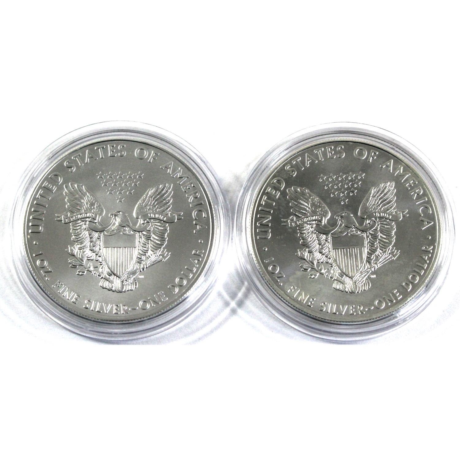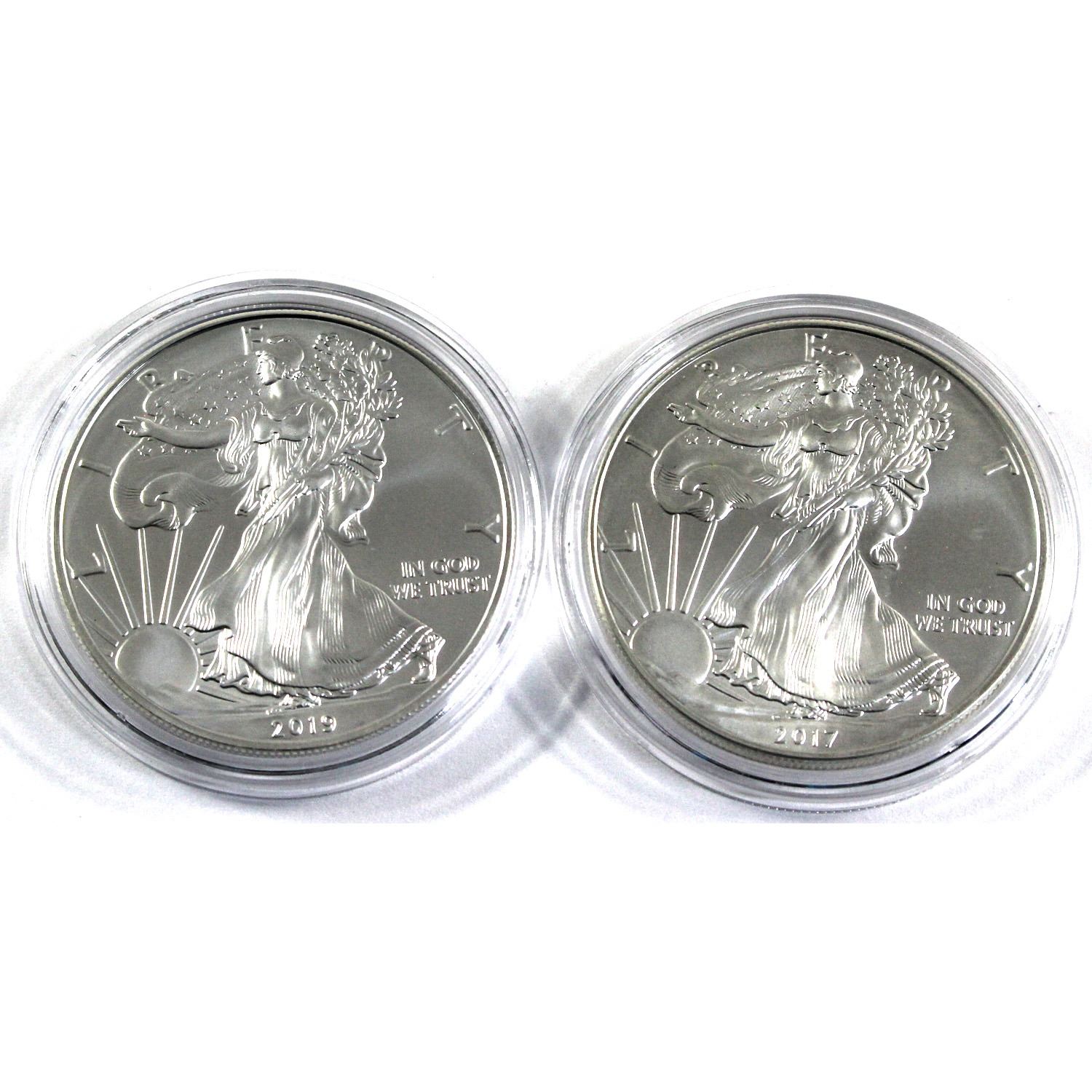2017 & 2019 USA 1oz .999 Fine Silver Eagles in Capsules (2017 is toned). 2pcs (TAX Exempt)